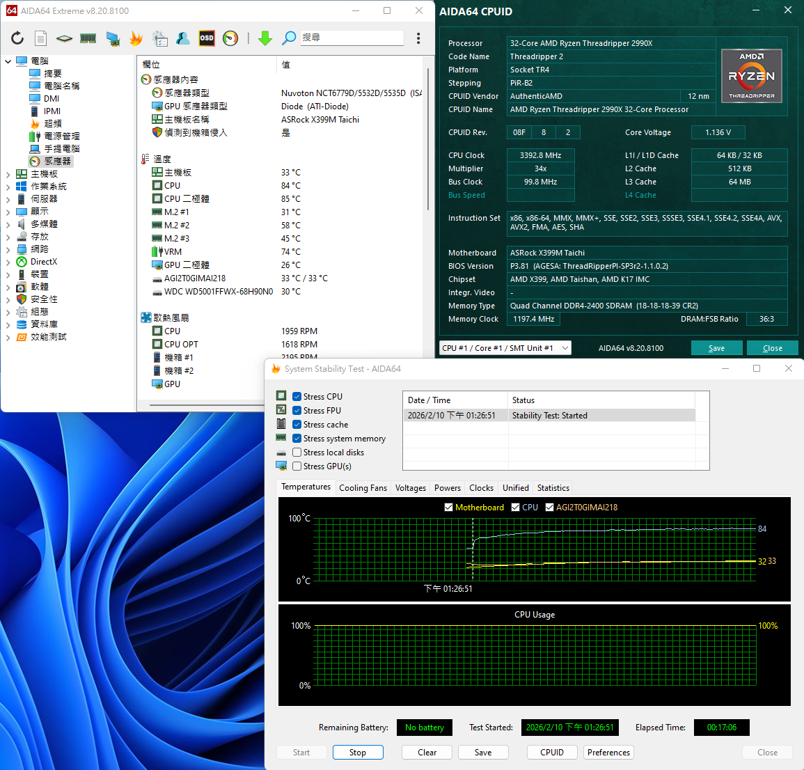 1.品名: AMD Ryzen Threadripper 2990X+ASRock X399M Taichi 主機板