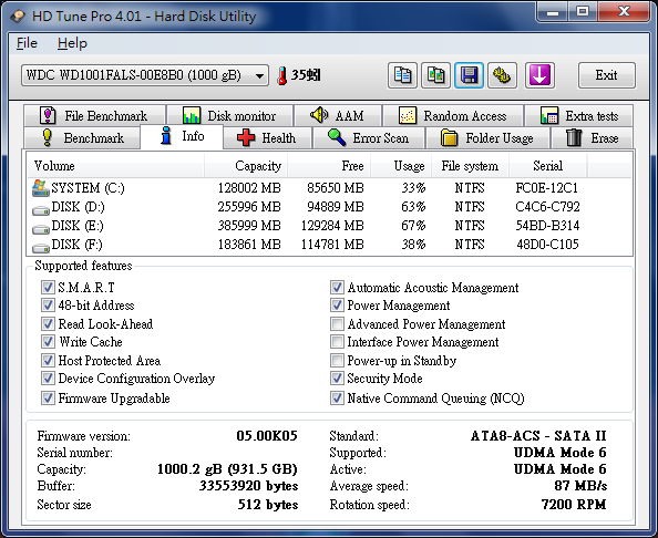像HD Tune顯示的,是寫“支援的功能”,而不是使用中的功能, 像弟用IDE模式,HD Tune的NCQ也是照勾不誤。 ![]()