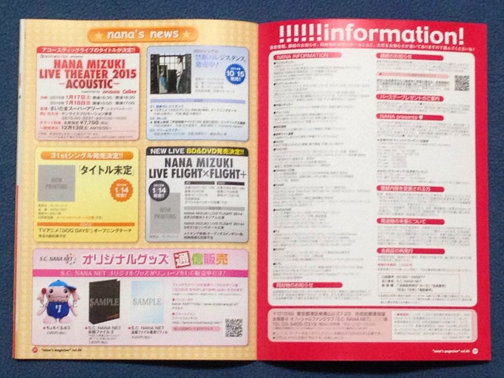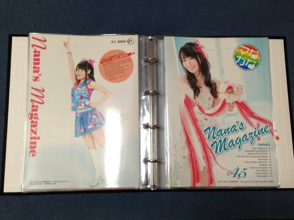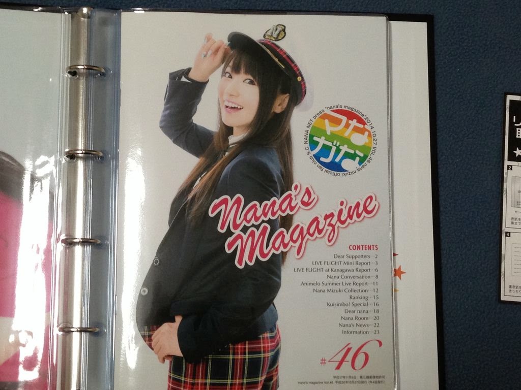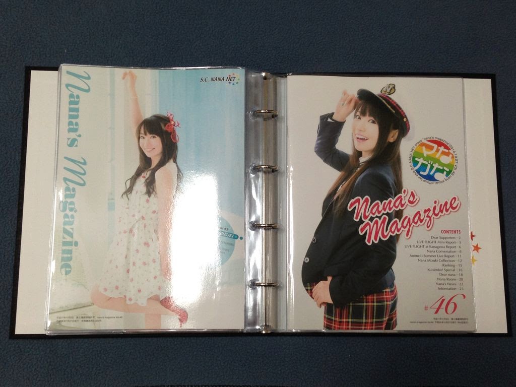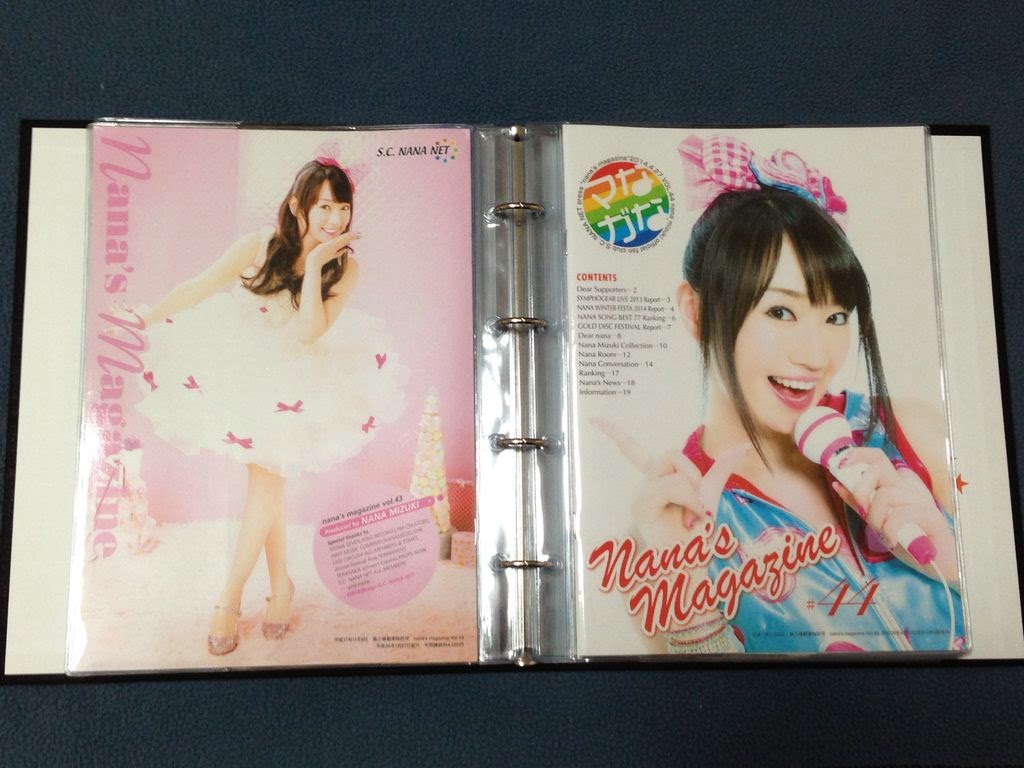剛好一起收到,就一起寫吧。 首先是LIVE THEATER 2015 -ACOUSTIC- 的會員先行預約通知,雖然說沒有要衝,但現在才收到感覺挺妙的。 會報 Vol.46。 這期依然是回顧和報導LIVE FLIGHT,所以服裝都是空姐、機師,延續FLIGHT的感覺。 這篇只有回顧到横浜場而已,新加坡和台灣場不在其中。 還有ASL 2014的報導。 和滿滿的奈奈機師卡。 FLIGHT Making of部分、30th 單 & PV 花絮、GIRL'SFACTORY 14、MUSIC JAPAN和天使と竜の輪舞的相關報導。 31th 單和LIVE BD/DVD預告,還有等下要介紹的東西。 FC通信商品。會報專用收藏冊,和補充內頁一組。 官方的會報收藏本。 補充內頁。 封皮有點絨布的感覺。 果然是官方的,內封還藏兩張奈奈圖。 會員福利。 補充內頁的標籤。 使用說明卡。這是官方製作的專用內頁,與一般市售的不一樣。 使用方式。 使用方式就像這樣,是把會報的封面像是裝書套一樣套上內頁。 前後都套上後就像幫會報套上了書套,而且又可以裝進活頁本中,一舉兩得。 套的時候要小心一點,因為官方設計的尺寸剛剛好,一點空隙都沒有留。所以,裝的時候要耐心一點,慢慢裝,不要急,一定可以裝進去的。而且因為尺寸剛好,所以套上後,會報不會滑落,可以固定的很扎實。 目前手上有七本會報,從Vol.40到Vol.46。全部套上內頁。 將七本裝好的會報放進活頁本中。 本來想說,一本會報這麼薄,怎麼可能活頁本只能裝八本,裝完一看,還真的只能裝八本而已。等明年遠征時,會去收之前的二手會報。據說,除了Vol.01∼Vol.07之外,大部分都不難取得,也不會貴到哪裡去。等明年看看會報收的狀況,再來買新的會報收藏本吧∼ 架上又多了一本奈奈本了。 好久沒買開拓了。 會買的理由在這裡。有台北演唱會的訪問。書就不拆來拍了,雖然這本有點小貴,但不是多難入手的東西,有興趣的就請去買一本支持一下吧。