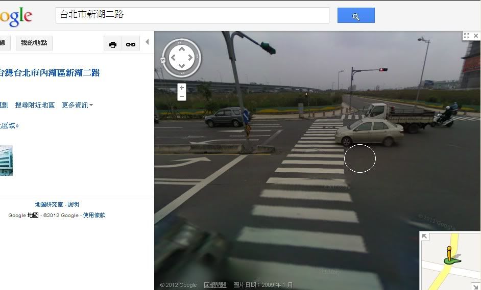 1. Google Map 網址的用法: a. 先用Google地圖頁面, 輸入地址中文資訊, 他會找到該處地點 b. 點出該地點的圖後, 螢幕左邊的畫面需呈現出白底的文字資訊, 這時候左邊白底的資c. 訊頁面右上方有個鎖鍊的圖案, 點進去 d. 勾選縮短網址, 然後將縮短後的網址貼上來即可 2. 所以您是在新湖二路最前方的機車停等區等紅燈(面對行善路417巷), 綠燈後左轉要接行善路, 結果被同向後方的機車, 逆向撞到你的左側, 撞擊點在斑馬線上是嗎? 參考以下新圖: http://g.co/maps/pr3bt a. 請問您當時停在停等區的哪個位置? b. 撞您的機車騎士是跟您同向道路, 逆向超車要直行接行善路417巷對嗎? c. 撞擊點在您機車左側是嗎? d. 撞擊的斑馬線是上圖照片中哪一段的斑馬線上? (停等區前那個, 還是左方那個, 還是遠方前方那個?) |