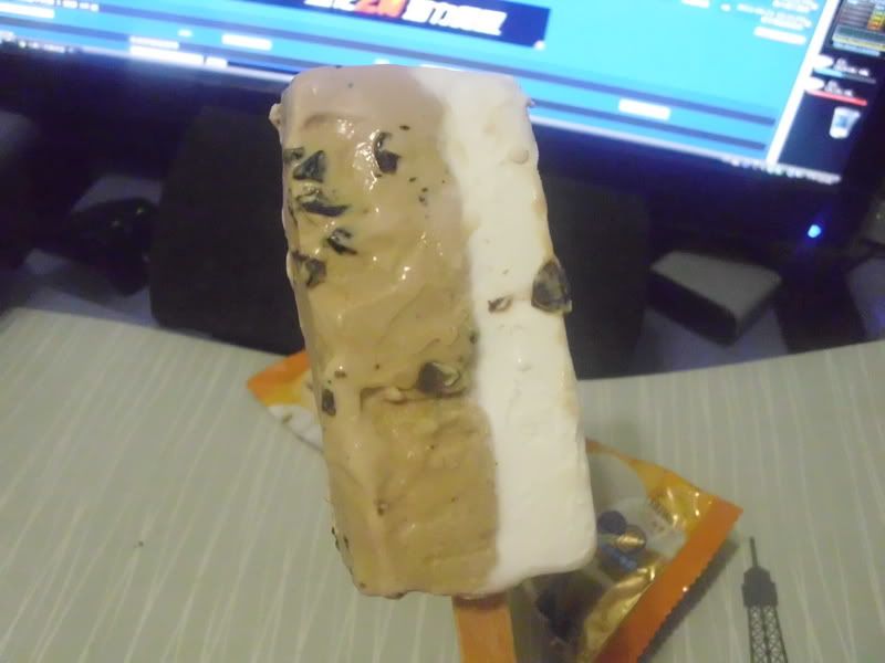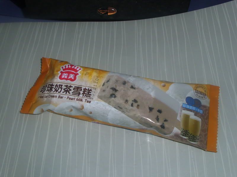 買了兩枝一枝給小胖表妹吃 ![]() 感覺好像不是很好吃耶 ![]() 珍珠口感怎麼像在吃仙草蜜 ![]() 還好一枝給小胖表妹吃 吃完覺得還不如買一杯珍奶喝比較實在 不是說很難吃啦 但就是不是很對味的冰棒 早知道買哈密瓜口味的 ![]()