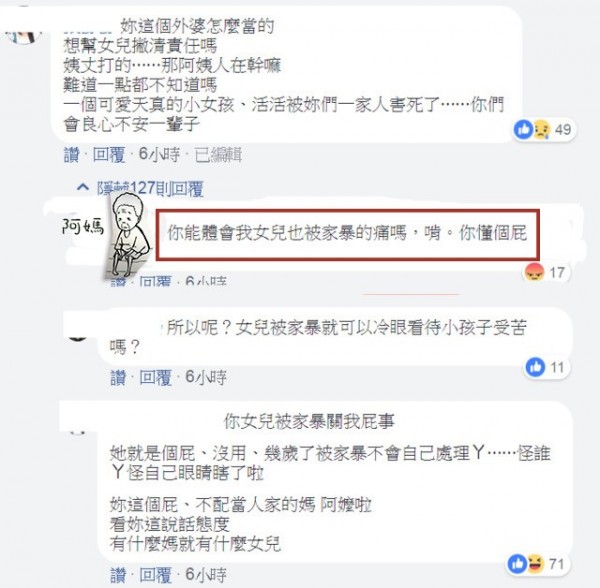 阿嬤+媽媽+爸爸, 本身就全都是有問題的大人 有問題的家庭, 偏偏又一直有生小孩, 讓痛苦持續延續下去 唉.....願一路好走 |