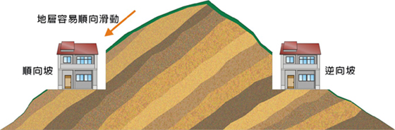 順向坡雖然"相對"風險比較高, 但也會因坡度、植被、排水等等狀況影響風險程度. 也可以用擋土牆等方式提高安全度. 所以單純因"順向坡"就全面禁建, 以目前台灣建地價格的情況來說不太適合. |