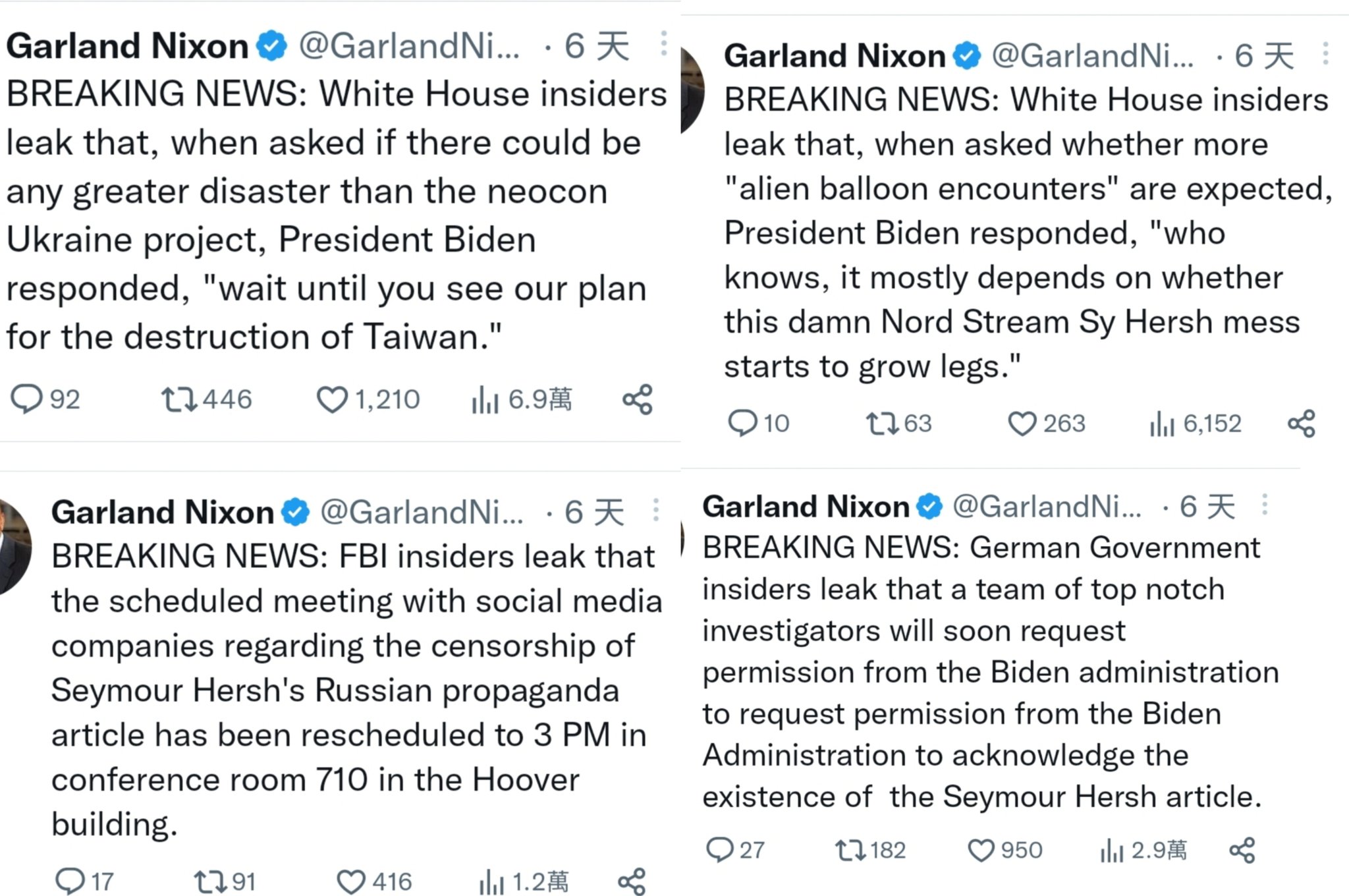 中午無聊看一下ptt, https://twitter.com/GarlandNixon Garland Nixon Radio Talkshow Host & Political Analyst in Washington DC 脫口秀主持人 aka 政治評論家! twitter內文根本都在罵拜登,也吹舔俄羅斯,所以這咖po的文,代表拜登跟美國政策??? 先不論這咖的重要性,如果連個twitter的話都能信,那共產黨已經滅亡大概100萬次有了 各國國家政策,以後直接看第四台聽各國名嘴唬爛就好了啊? 所以支那到底要聽逃亡美國的吹,還是小粉紅吹的代表習包子的意思? 舔共仔你們有點創意好不好,這時候連美國野雞名嘴的話都能當聖經拜了,我會笑死。 |