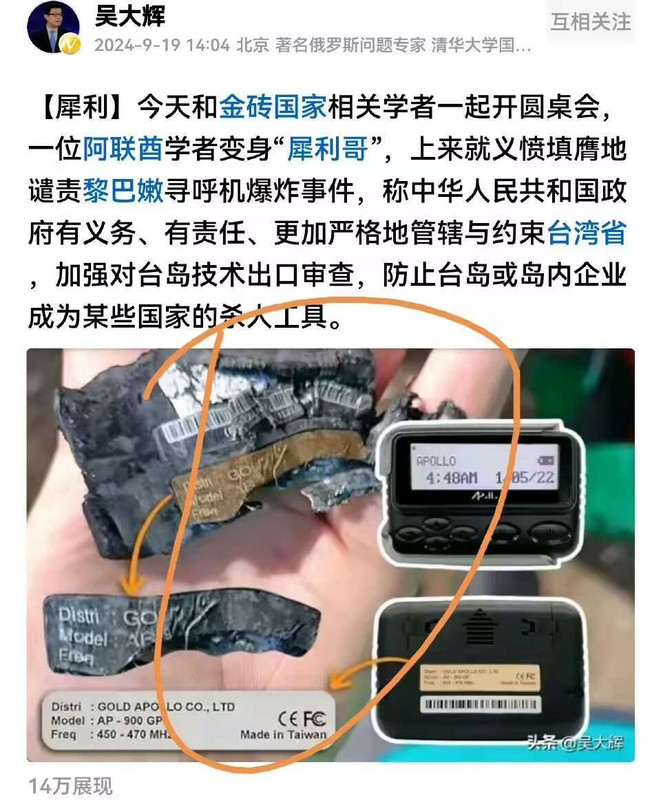 [粗大事了! 真主黨遭大規模攻擊37死 2750人傷(400重傷更新), 武器竟是為台製 BB CALL ?!]