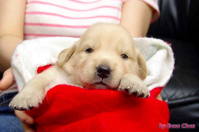 雖然有聽說黃金小狗要漂亮其實是要看母狗的體態,也許波波的媽媽也是 很漂亮的黃金,但是這次波波所生的小狗仔,每一隻都是可愛到不行, 他們家女主人還在掙扎到底是要割愛還是要自己保留。 引用: