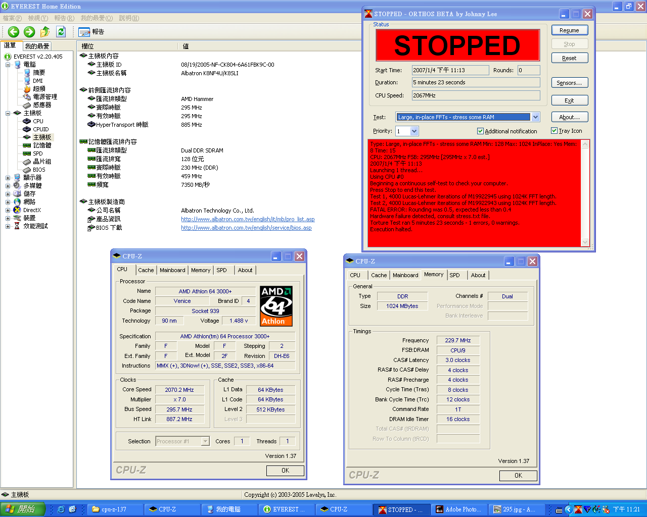 終於我也等到這一顆了 板子我一樣買K8NF4X-939 第一次回家試,直接三百外頻開机,OK! 但進去WINDOWS發現滑鼠不能動,再試一下 發覺所有USB都只能查覺有硬體在"插它",可是都不能用 這下子糟了,我買的店在大里市,有夠遠 又跑了來回一個多小時(那家店的店員真的很机車,絕不去第二次) 一回家,重新安裝好了以後,果然這次可以順利使用USB 這一片也可以直接上300外頻,真的是好超值的板子 之前使用青雲K8NF4X-754也是用散步龍直接跑300外頻 真的很喜歡青雲做的主机板,不過它的晶片風扇很糟 跑一陣子就會有點聲音很煩,我都買回來直接拆開貼紙上一層潤滑 就都安靜無聲!現在939便宜又好超的板子不多了 推薦這一片,不過很難找得到... |