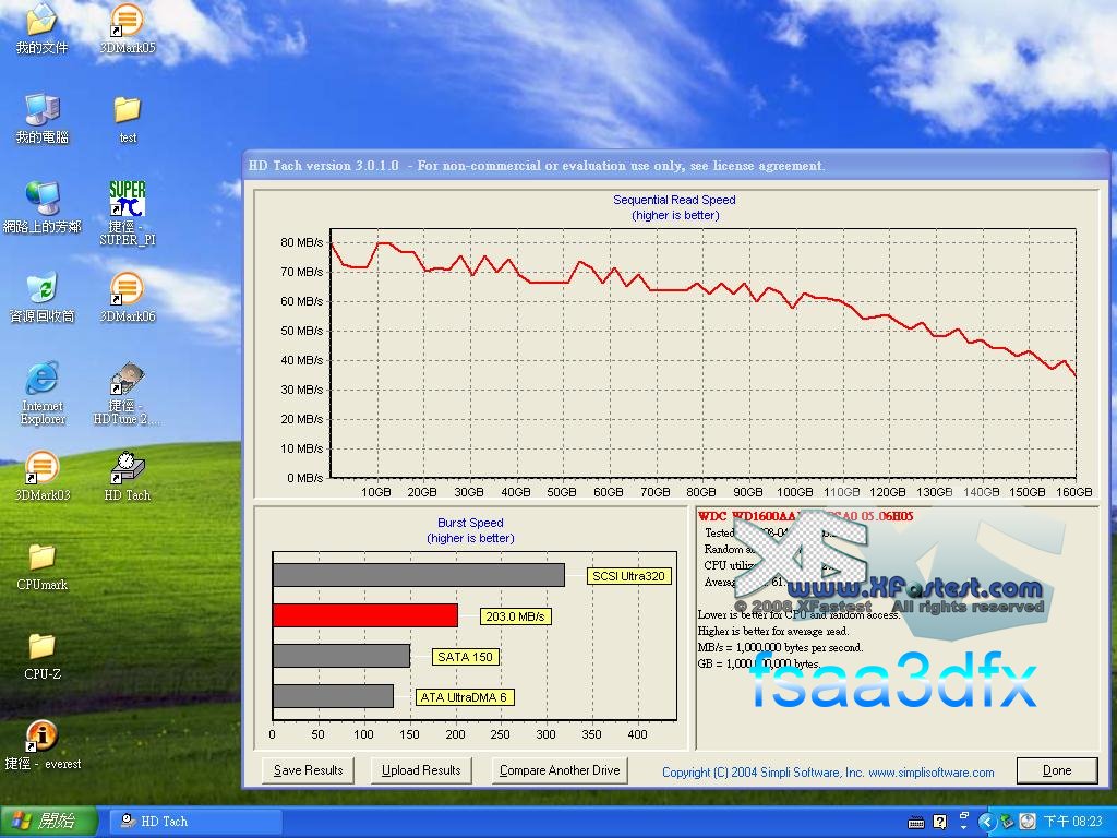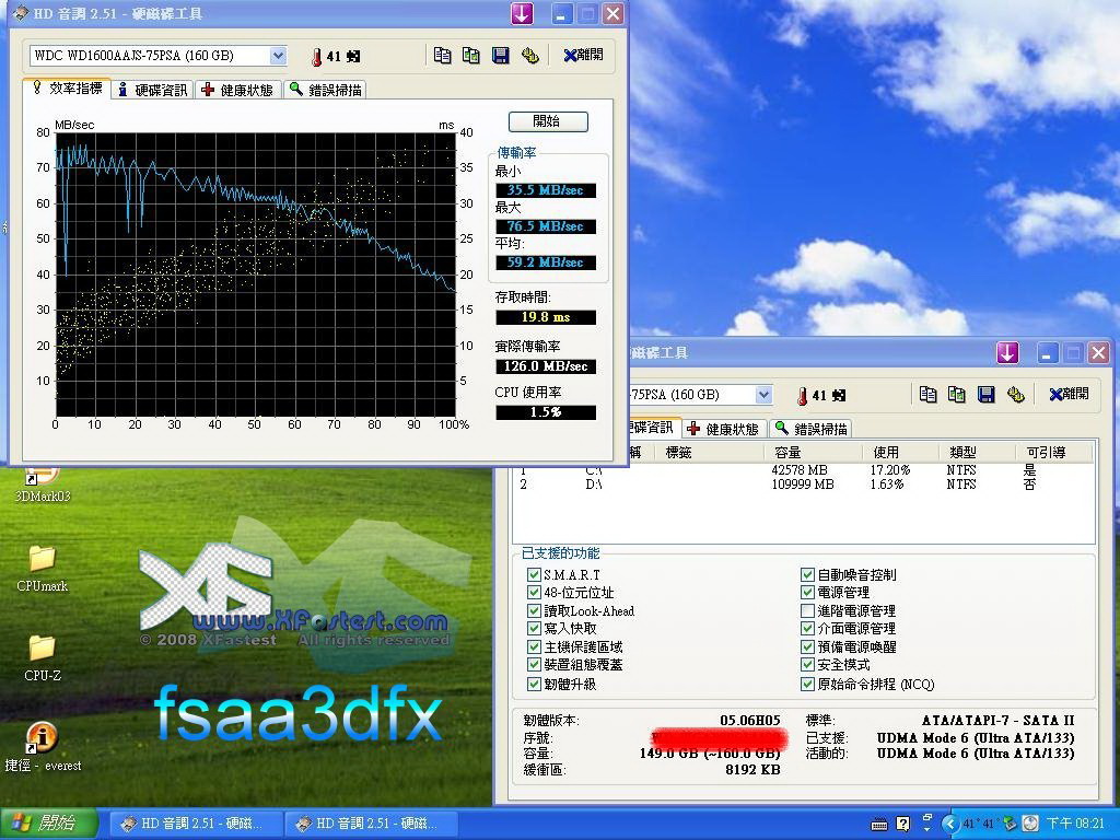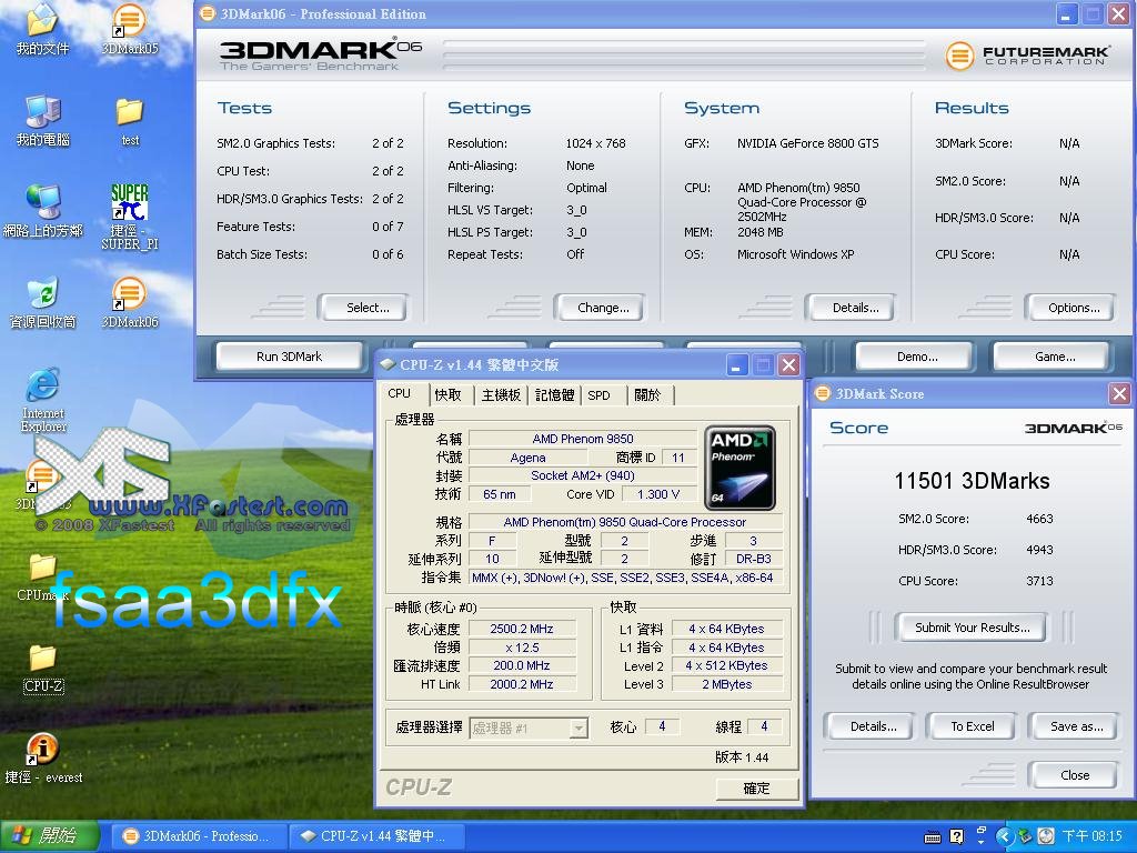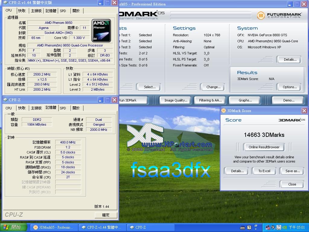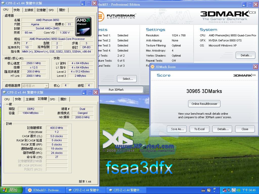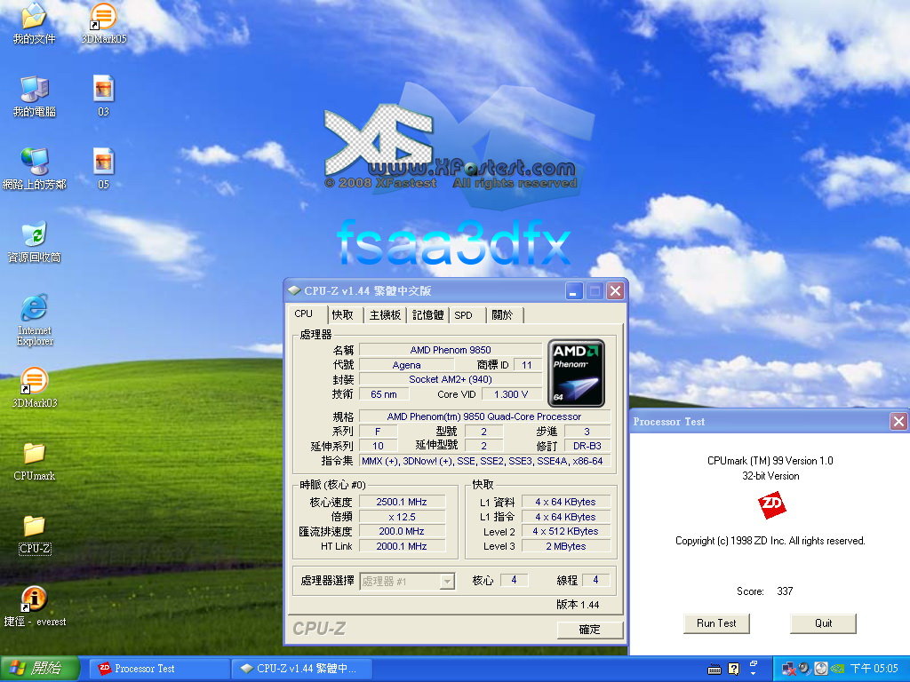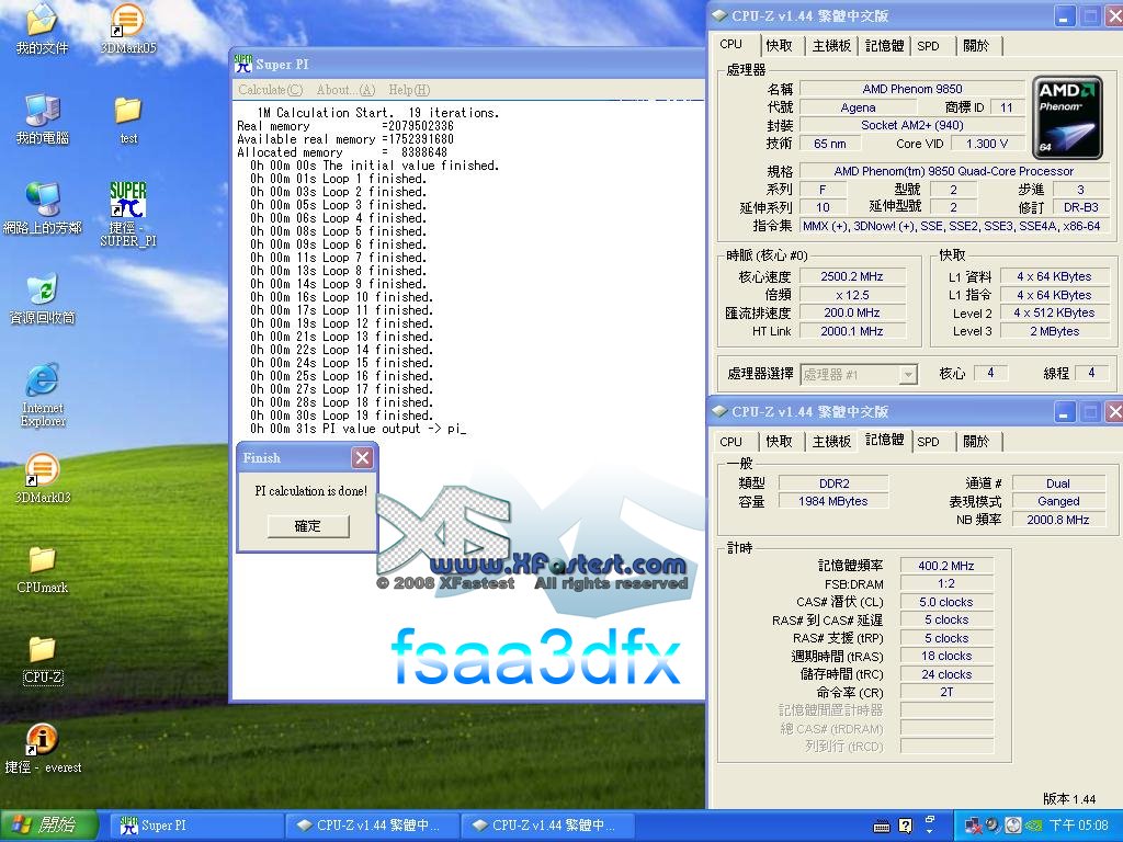 全部皆為預設值測試 測試環境︰ 主要核心元件 主機板︰ MSI「K9N2 Diamond」 顯示卡︰ MSI「NX8800GTS-T2D320E-HD-OC」 處理器︰ AMD Phenom X4 9850 BlackEdition 記憶體︰ DDR2-800 1GB x 2 硬碟機︰ WD 1600JS with NCQ 3DMark03 單卡預設︰ 3DMark05 單卡預設︰ 3DMark06 單卡預設︰ CPUMark99 預設︰ ![]() SuperPI 1M 預設︰ 南橋傳輸效能 HDD Tach︰ 南橋傳輸效能 HDD Tune︰ ![]() 後續超頻成績…待續