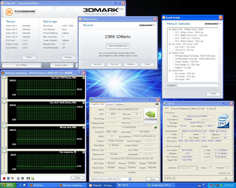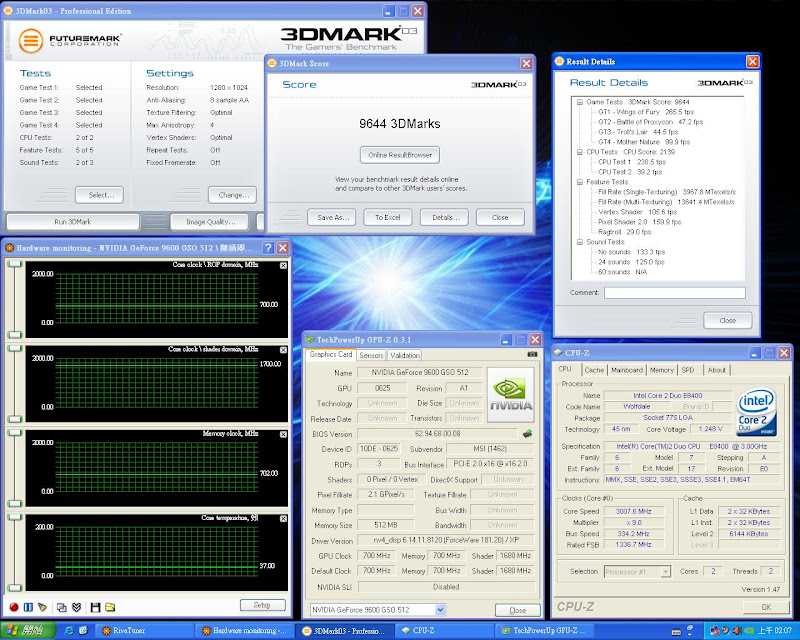 CPU與顯卡都降回預設頻率了 !! 1024 × 768 -> 1280 × 1024 -> 1280 × 1024、8AA -> |