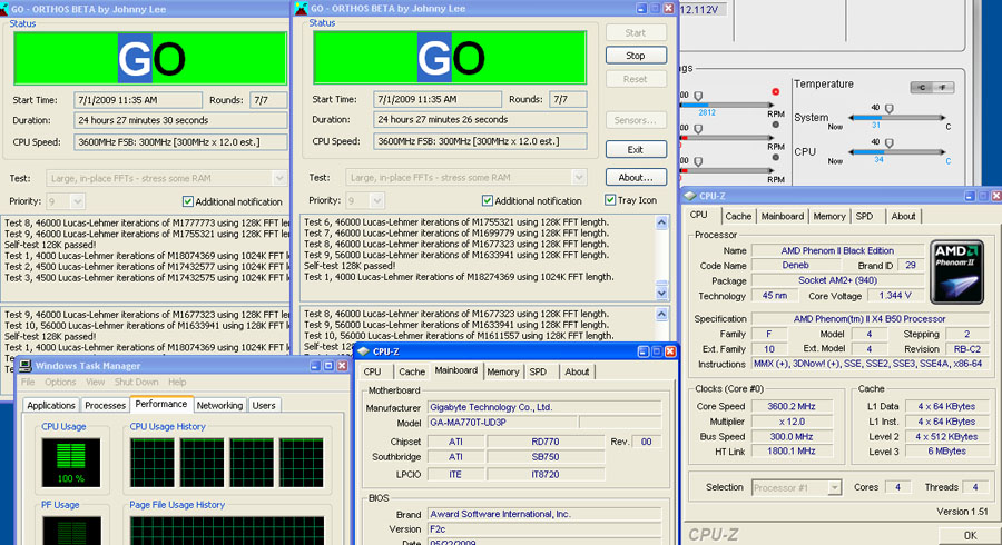 PII X2 550BE @ 4 Core 1.344v 3.6GHz 24小時燒機 GA-MA770T UD3P ![]() |