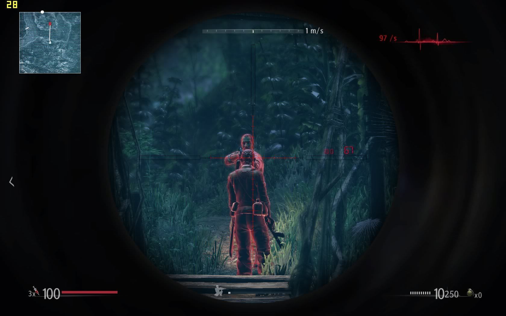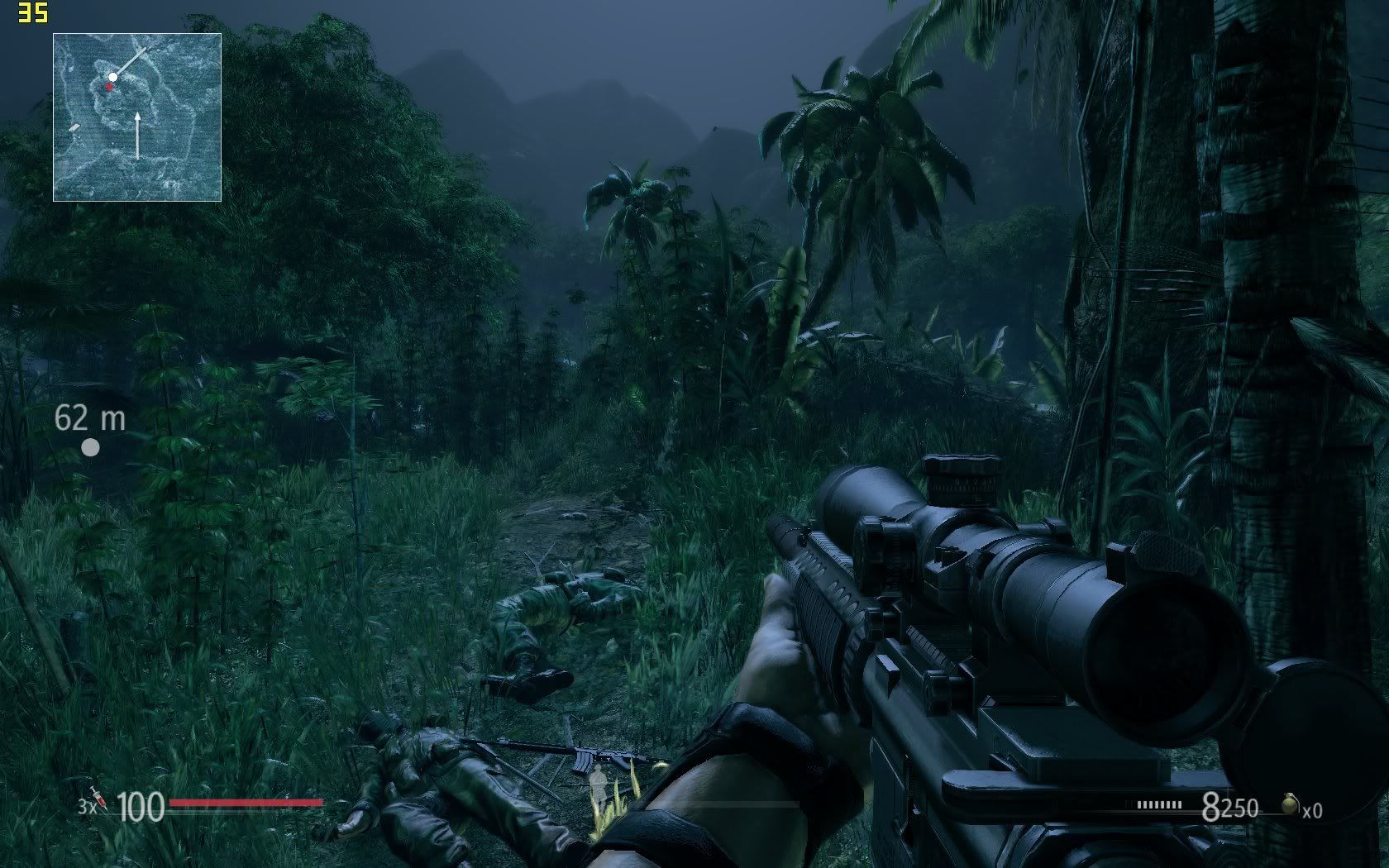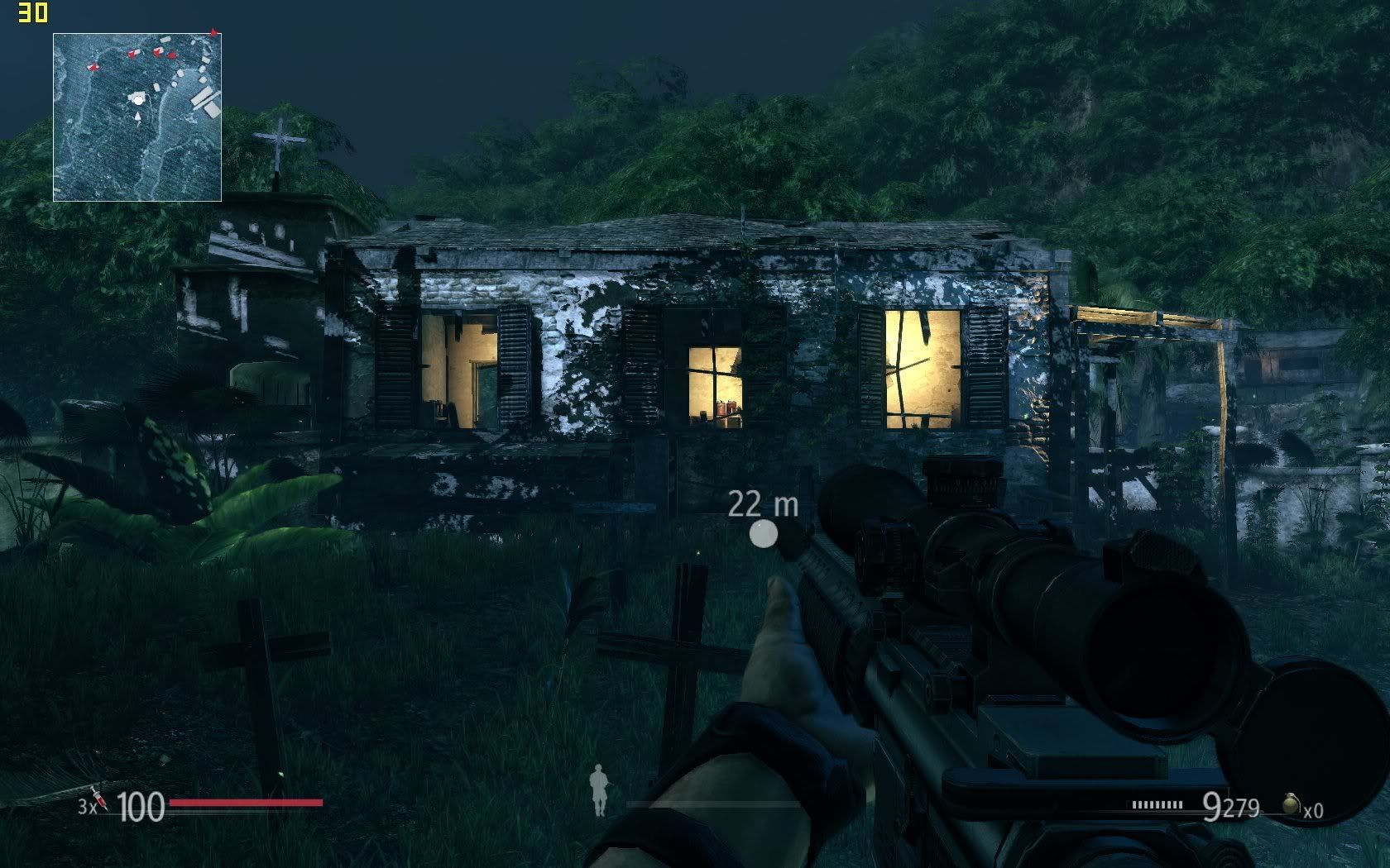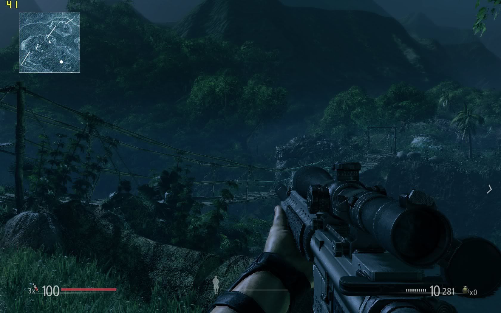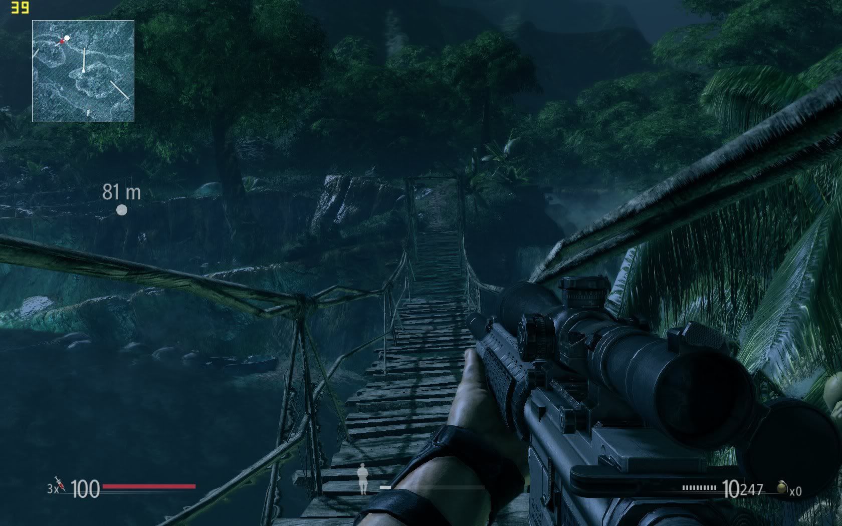 這作品像 COD4, 某些地方也能拿槍硬幹...這樣就失了狙擊手的角色.如果學 COD6, 每一關都是一個狙擊手著名的戰役,像友軍在底下前仆後繼,自己獨自去摸敵將的頭...這樣做場景才大得起來,代入感會好些. |