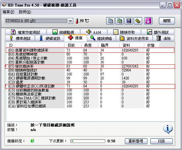 我也覺得有點高...會不會是機殼散熱不好? 去年換電腦時只有機殼和POWER沒買新的 所以現在還是使用很舊的かわいい牌機殼 好像現在新出的機殼側蓋都變薄了(散熱較佳?) 05的值是出現1就算很嚴重了嗎? 因為已經亮黃燈了...不過出現1已經好一陣子了 |