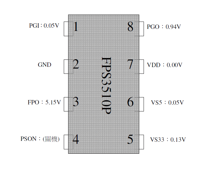 VDD接近於0代表12V和5Vsb都沒有輸出(有可能PSU根本還沒power on,或是5Vsb故障連帶造成無法開機),您可能要先檢查這一點 ![]() .... |