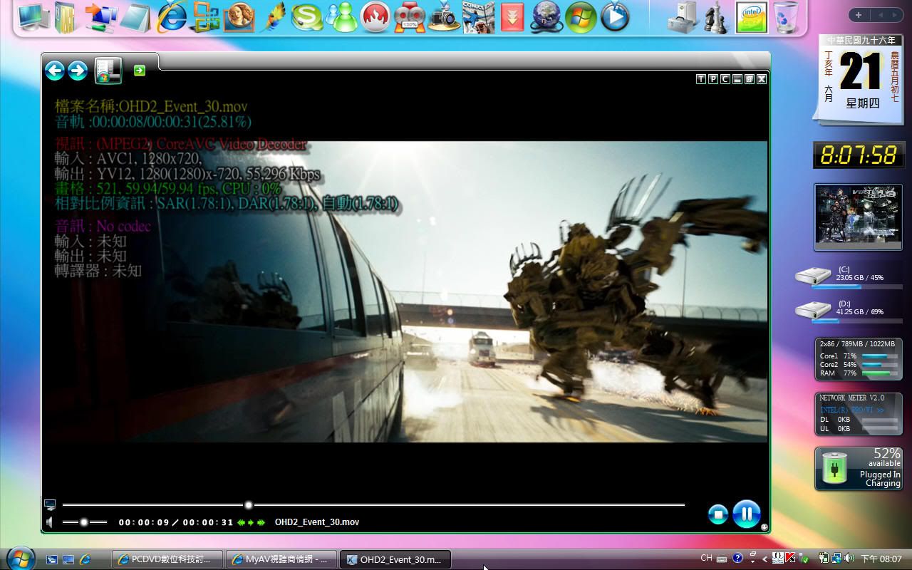 ![]() CPU使用率不算太高(dreamscene同時做動中) 因此排除是硬體的關係, 影片播放詳細資訊就是找不到音訊格式, 真是奇怪了 ![]()