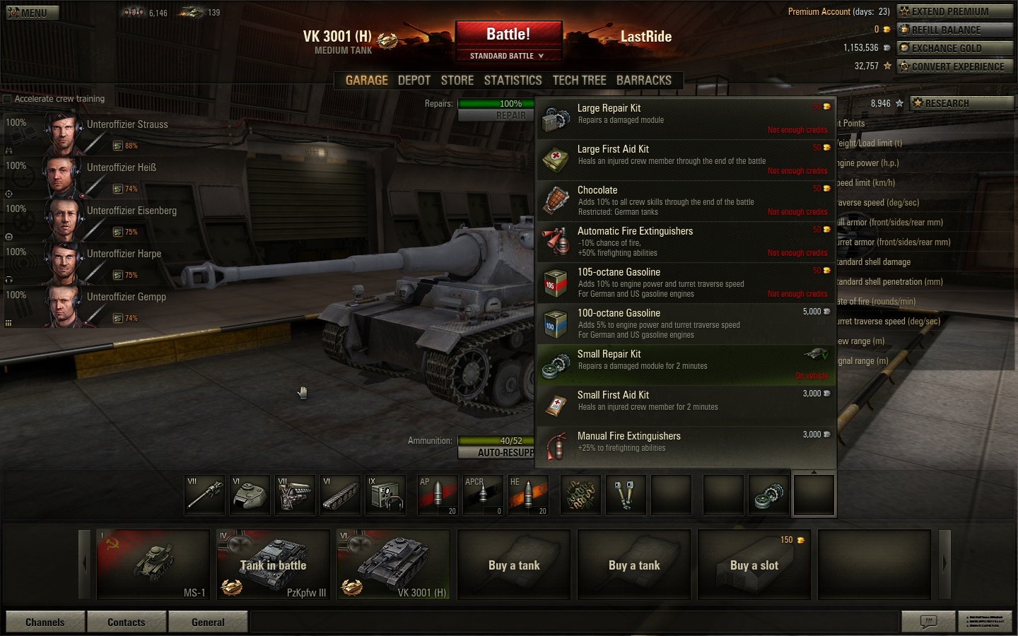另外,以往買車時都必須車組一起買,現在多一個新選項,Buy the tank without crew,如果打勾的話,表示只買車不買組員 不過,買不買組員,價格不變,還有,買車的同時就可以決定要不要先把車組訓練好 一樣,20000銀幣75%,200金幣100%,幾個組員就乘幾 如果不要全部組員都訓練,就先買車以後再單獨訓練 |