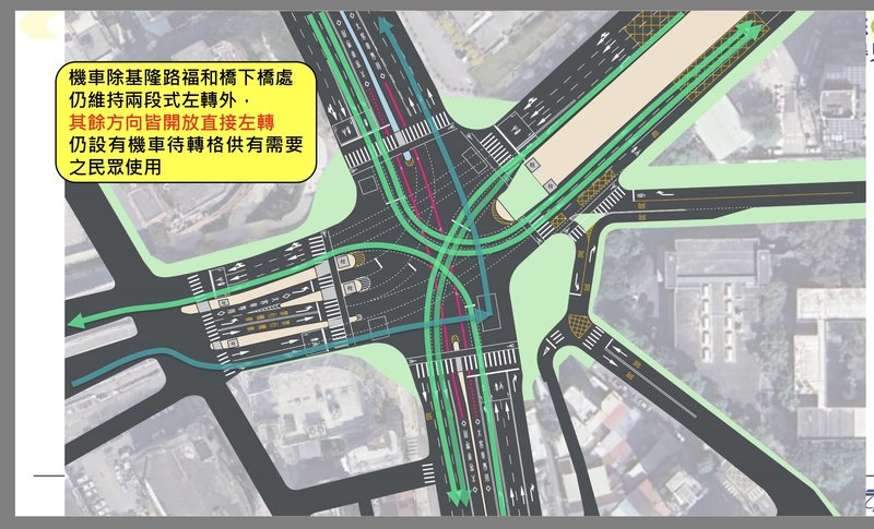 你騎的零百加速機車飛到基隆路給我看還能躲過固定式啊 ![]() 順帶一提,機車除了下橋外,其餘路口皆能直接左轉 ![]() |
