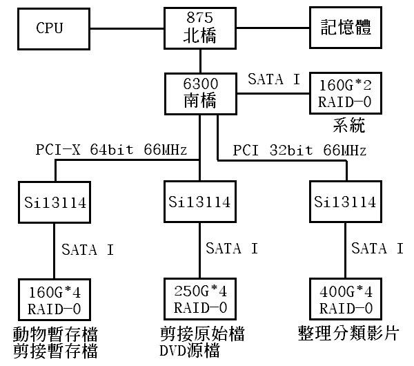 會不會是主機板晶片組相容性問題? 小弟用82875北橋配6300南僑的板子到現在都沒出現過用SATA硬碟有問題的。 小弟系統這樣架:全部都是SATA硬碟。 系統很大,硬碟很多, HDTV影片檔剪接時也常在各硬碟間對傳,常常一傳就是上百G, 尚未出現過會讓系統停頓反應漫半拍的情形。 ![]()