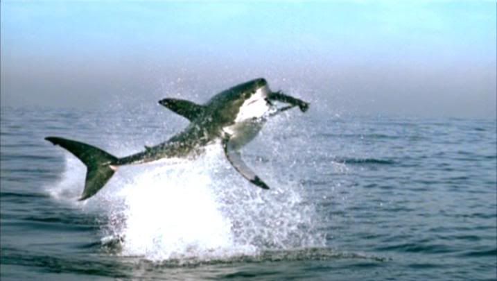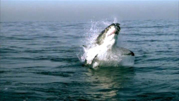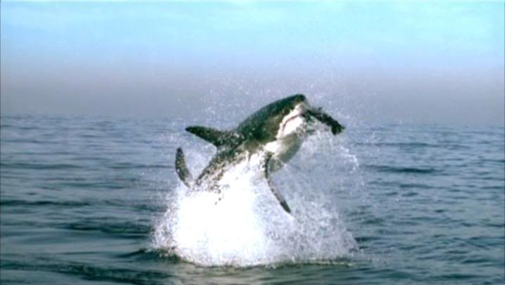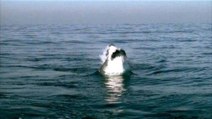 大白鯊躍出海面獵食的連續鏡頭