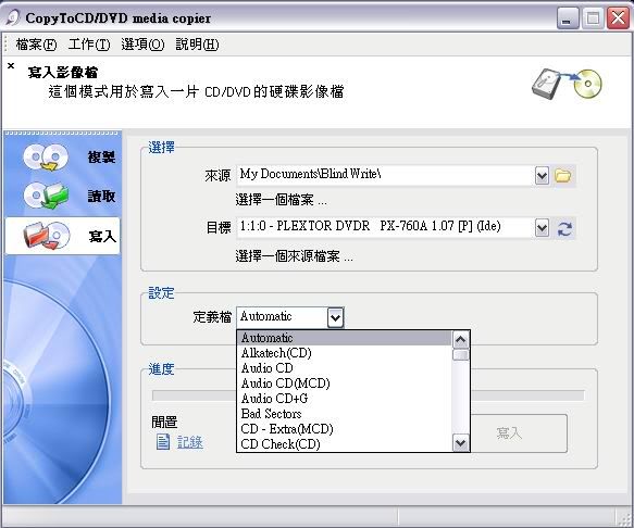 Automatic只是最基本的功能 (沒有外掛Profile的話破防拷功能就不怎樣) 因為就沒有像Alcohol 120%一樣有許多定義檔 掛Profile上去才會增加定義檔,針對不同防拷有不同的破解方式 ![]()