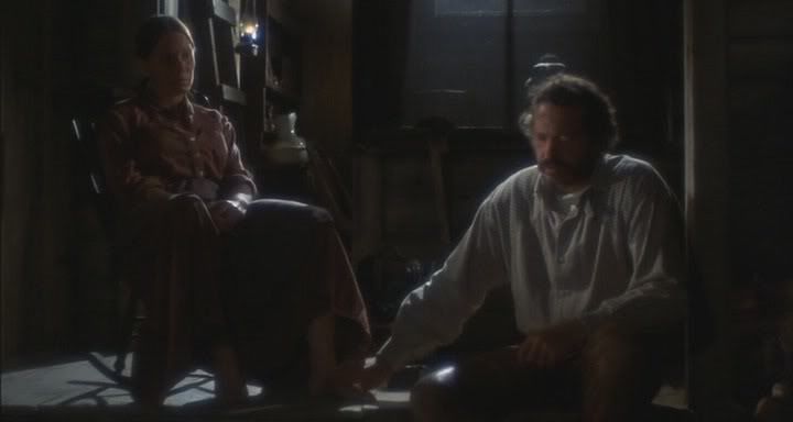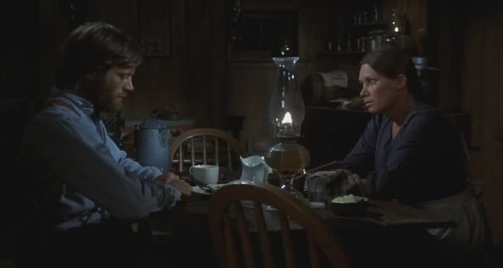 一萬美金在1971年差不多四十萬台幣 的做價 應該屬現金支援 不算後制跟拷貝沖印 採取過去電影使用過的搭景跟服裝租用拍攝 以十六釐米也相當吃緊了。 其實有了演員有了照明 有了攝影師跟底片 有效率的推動 還是可以拍出佳作的。 Peterr Fonda 是在影圈成長 沒吃過豬肉 也聽過豬叫。 但這整部作品The Hired Hand卻超越了許多大制作的電影。 他以西部舊時代述兩個男人的義氣相交和一個女人的新思想故事。 The Hired Hand運氣不是很好 要不是 Sundance 重新發片 根本被埋沒了。但電影觸及的女性問題有他後現代的思想觀 那怕 2008 年來觀 別具一格。 他強調女性生理的需求 但是在精神層面還是很忠實的。 ![]() ![]() ![]() ![]() ![]() ![]() 漢娜收留了海利跟他的朋友阿力 算為雇工。她知道海利哪天呆不住又會拋棄她們母女的... 所以沒讓女兒知道她爸爸是海利。 當一天兩個男人 進鎮購物 對於 漢娜有很難聽的傳言...不等海利搞清楚 阿力就把人痛扁了 --這是男人跟男人間的另一種默契。 ![]() ![]() ![]() --他們說你跟雇來的人睡覺 你僱人和你睡覺 天啊,你管這些幹什麼 --有多少個? 有關系嗎? --當然有關係了 在我跟別人上床之前 你已經離開很久了 別以為我會一直等著你 我不會 我已經忍受太久了 我每天夜理耗這樣走進房間 瘋狂地渴望有男人在 不管是什麼男人,都不要緊 而有時候,有個男人在那理 他知道了,他就會進來 有時候我佔有他,又或者他佔有我 反正適合就行 但並不是所有人也不是每次我都想 當這個季節的工作結束了 我就給他們錢,讓他們走 不管他工作得多好或者讓我有多快活 因為男人在女人的床上時 會以為他們才是老大 而遲早他們就會想要 走出棚子,到這理來 而我不想這樣 因為我這理已經有一個男人了 我不想再要一個 ![]() ![]() ![]() 海利到鎮上貼公告 小農莊不再雇用工人, 表態了自己不會再離開漢娜 ![]() ![]() 我不記得有多少個夜晚我坐在門廊上前後搖晃著自己,看著棚子 希望那理有個人會出來 又希望他出來,又很害怕 在什麼地方都沒關系 在地理,在草堆理 有時候,就在泥土土 都沒關系 你能看得出來,是吧? 今晚不管你還是他都沒有多大關系 你覺得他在這理會快活嗎? ---有時候他會的 女士,如果你真的想要他 你就得告訴他 ![]() 海利,你現在在這理定居了 我要繼續我們的老計劃了 但你喜歡這理,我知道的 ![]() 外面的這個人我相信他是很正派的 但他在你心理佔據很重要的位置 海利,他就是你離開我的原因 我知道你離開的時候你還不認識他 但他就是你要去尋找的人 一個不會像女人那樣 去打探別人的私事的男人 他很容易相處 他不會對事情懷恨在心 每次我和你吵架 每次你累了,他都會在那理 我會懷疑你會跟他一起走 或者他會告訴你說別做一個傻子 ![]() 兩男一女相處 阿力知趣的離開去找他的加州海岸了,相處七年他一直是海利心靈上的依賴, 有他在的一天漢娜會沒有安全感的。 ![]() ![]() |