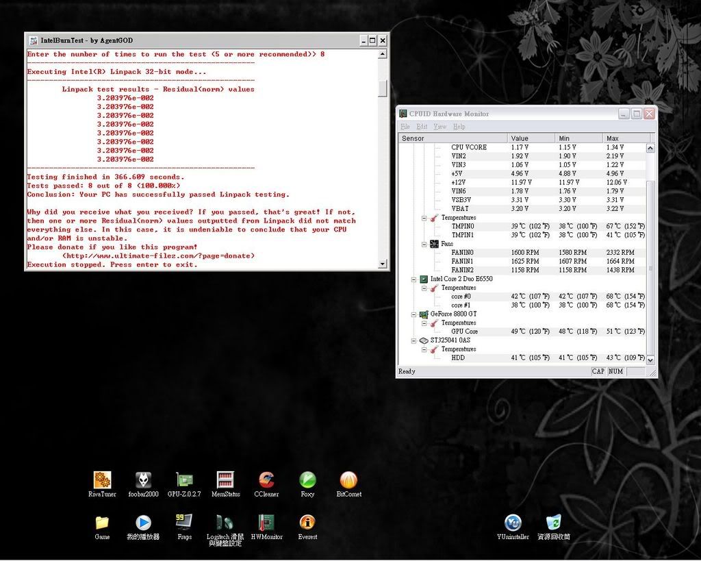 原本從網拍拎來的絞肉扇(沒聽過的Bi-sonic), 燒BOINC&Folding都不會讓它"起秋".. 自動溫控只要2700RPM就可以堪住一般燒機程式, 沒想到這套軟體一開.. 沒超頻的Q6600瞬間衝破70度, 絞肉扇也5000RPM地暴力運轉著.. ![]()
