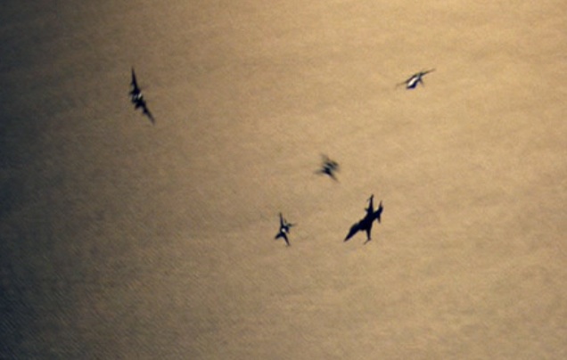 左邊的像F14 右下地向F16 中間的像F5E (剪影) |
