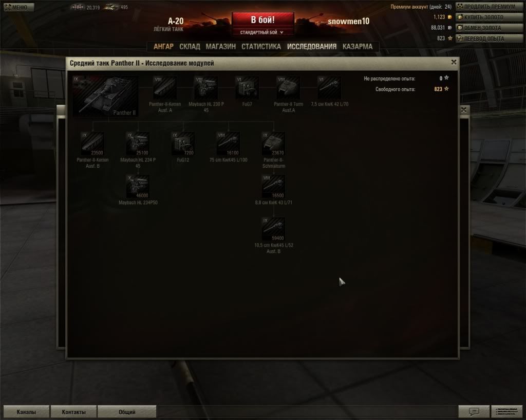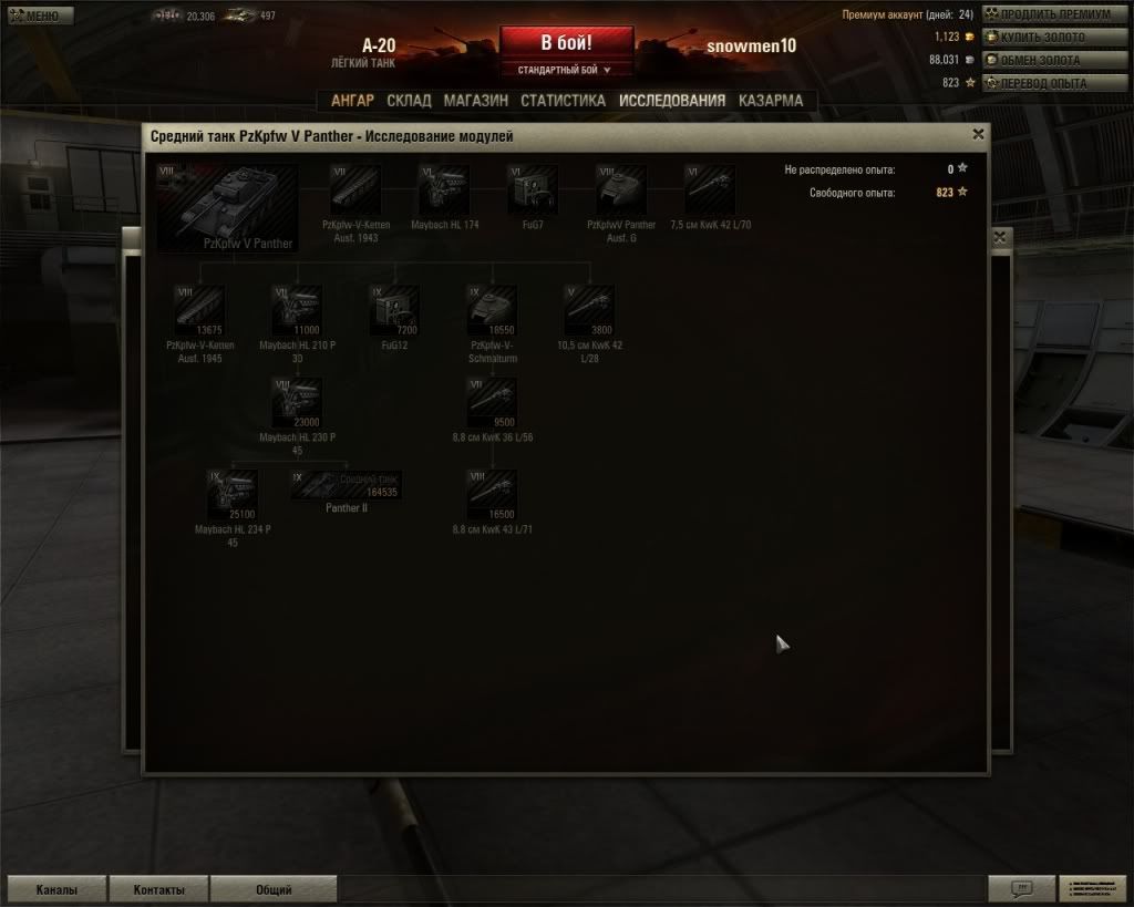 第一個先講 CCCP 的 T-54。首先,他需要 167,025 經驗點數從 T-44 的引擎升級上去(要先升級引擎),所以我這邊圖先不放,直接放 T-54 的科技 Object 704 要從 ISU-152 的 D-25 砲升級上去,需要 152,900 經驗點數。Object 704 的科技樹: 接著就是大家傳說中的 Object 212。Object 212 可以從 S-51 或 SU-14 升級,可惜的是... Object 212 應該可以說是廢物吧... 因為所有東西都是跟 SU-14 一樣。Object 212 直接從 SU-14 升級的話(完全不需要升級其他東西)需要 185,570 經驗點。 第二個講的是德國 豹二從金錢豹的 230 P45 開始升級,需要 164,535 經驗點數。 接著是 Hummel 升級 Gw-Panther 和 Gw-Panther 升級到 Gw-Tiger 的圖片... 至於美軍就不講了... 話說,白金方案又多了一個:72 小時 650 金。個人猜測是有買遊戲的會送 650 金... |