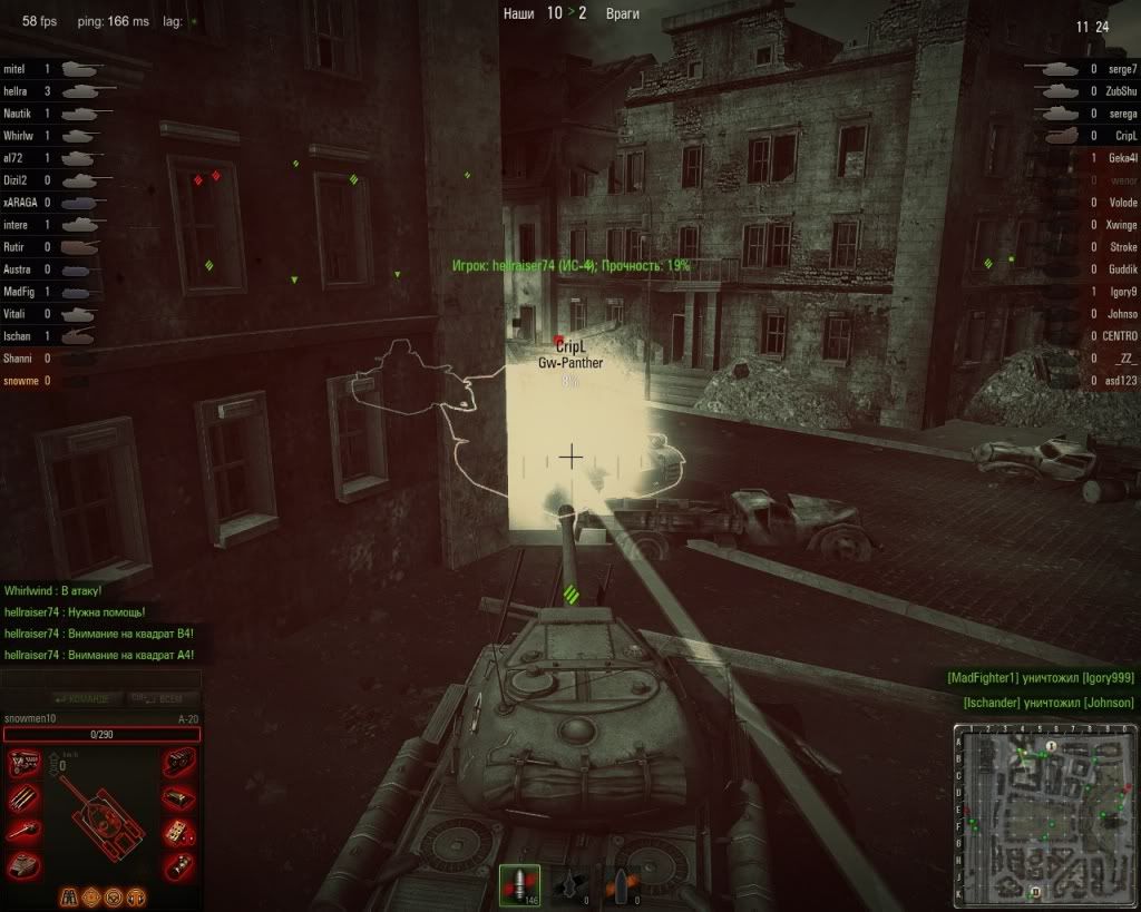 先來講介面更新的部分。就是多了 Роты,也就是 Company Battle。 進入裡頭就會出現類似這樣的視窗 可以點選任何一個 Company 後加入... 我就像小白兔衝進去森林內一樣看到一個就加進去了(我在俄服沒認識人) 三小... Object 212 都開出來了 (不過後來遭遇到 Object 212 感覺沒什麼特別)果然他們不要 A-20 上面應該是最大的改變。另外還有 Platoon 有語音系統,我沒有 Platoon 所以沒測試... 介面另外還有改變的就是修車。普通我們領便當後,都是在主畫面戰車上方直接點選修車,接著選擇補給彈藥... 現在畫面就乾淨的這樣: 壞掉的車點選後就會出現這樣的畫面。第一個是修車,第二個是補給彈藥,第三個是裝備... (Снаряжение 是翻 Equipment,我不確定這邊是講補給滅火器的裝備還是裝在車上的 Rammer 等等會被打壞需要修,畢竟我還沒買過(連美服都沒買過的人 XD)) ![]() |