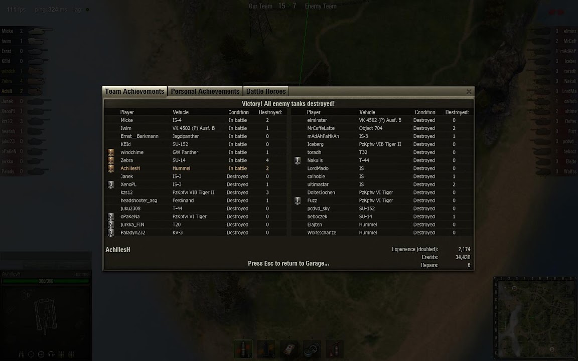我也有一張神風, 用T-46拿的 怪的是,我完全沒印象哪台比我高階的車被我撞死 ![]()