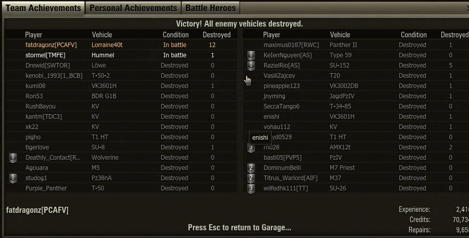 就是Lorraine40T 這一局很不幸的又是跟一群轟轟同隊, 在比數7:13的悲慘比數下, 連殺八台, 下課 不負PCAFV之名 ![]()