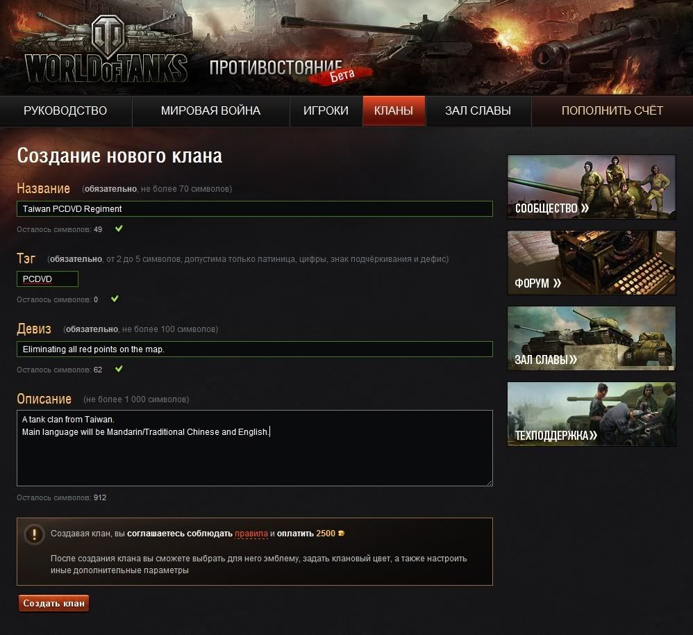 這邊就是測試伺服器,記者特地幫忙拍一些照片回來。 首先,就是 Clan War 測試。 寫入 PCDVD 的資料後,馬上通過 可見是因為營長的車庫內有德國車 (j/k)(Leader 要有 2500 金) 這是遊戲地圖。可以做很多事情但是都要錢! 派間諜要 500 金,改名字要 1000,改 xxx 要 $$$... ... etc... 金錢來源是每一個省都有收入!所以不用太擔心只能丟錢。 我選擇從科西嘉登陸,要去找義大利妹玩 只有可憐的我... 很可惜的,因為這樣,所以我少於 15 人,不能登陸作戰! 現在看的到兩個最大的改變就是新地圖和豹二。 新地圖很漂亮! 至於豹二真的變小了 報導完畢∼ 我覺得我應該會加入其他的 Clan 吧 不然我根本不知道怎麼弄呀 真後悔∼當時應該拉幾個人進來俄服... |