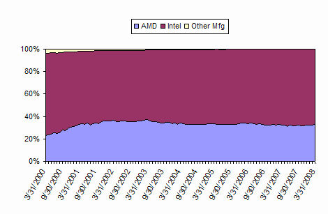 我覺得倒不是要靠AMD, intel才會進步, 推動公司進步與研發的是 市場需求. 市場有需求, 才能推動催生新產品, 而有需求的環境中, 你要是裝老大,研發的慢, 只會留下機會給另外一個"AMD"竄起. 反過來說,若沒有新的需求, 現在用的低階CPU都已經可以1秒開完Windows, 中階的都夠撐 ebay的database運作, 那就算有五家在競爭拼7GHz的八核心也會是乏人問津. 所以, AMD制衡Intel 這樣的現象, 只是結果, 並不是推動CPU進步的原動力. |