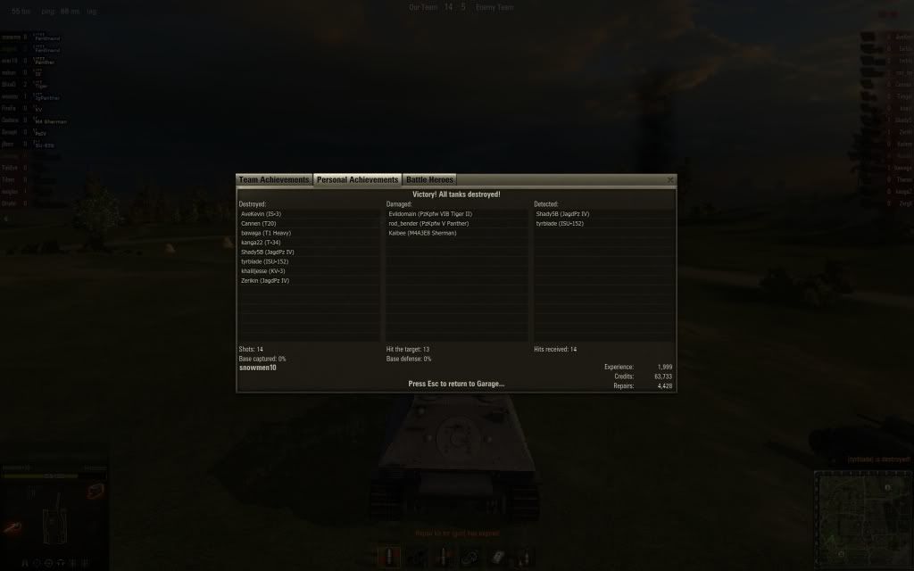 所以我在這邊發文: 台灣時間(GMT+8)三月四號 2300 小時 (EST: Mar. 4th 1000 / PST: Mar. 4th 0700 / GMT: Mar. 4th 1500) 我們將會在台灣時間三月四號星期五晚上 2300 小時開始這項紅白戰活動。其他時區的請用這一個網站參考時間:http://www.timeanddate.com/worldclock/converter.html TS2 通訊軟體資料(沒有的請下載。安裝後請用 Admin(管理員?)身分執行) Server: 140.112.103.81 Port: 8767(不需要改) Password: ts@NTU 現在總共有 22 位參賽者,將被分為兩隊,每一隊個有 4 輛六級或七級炮車,以及各 7 輛八級坦克。 地圖:Karelia、Malinovka、Prohorovka、Lakeville、Murovanka、Pagorki、Erlenberg、Komarin、Cliff、Westfield(看時間,但是不會有城市地圖) 我會在 2300 時開始寄出邀請。假設人數不夠多,將會看情況刪減。大致上我們要看大家互相的表現。假如您沒有八級坦克,歡迎您拿四級以下的坦克參戰。屆時我們也可能會請求一些人拿比較相同等級的坦克出來。 戰場將會在 Training Battle 舉辦。單場歷時三十分鐘。進入遊戲前將會被分入不同的 TS2 頻道。在進入遊戲後,每一隊在遊戲開始後必須所有成員到自家旗子前集合(包括被放遠的車),戰術會報討論 5 分鐘。開戰將在倒數 25:00 時開始。 每一場結束後,請到 “Personal Achievement” 後按 “Print Screen”(例如下圖)。最後請 E-mail 給我,謝謝。 ![]() 另外,我會再參考大家的時間,台灣時間星期天再次安排第二次紅白對抗賽。 確定參賽者: snowmen10 MANOERINA (會晚到) summer01604 JuniorD fatdragonz Horace FD3STYPER charlee_tw bibibobobibobo maddux0929 kevin_hsu red123en tail marinese femcat BIG snowwolf MSKEITH chauan Zebra |