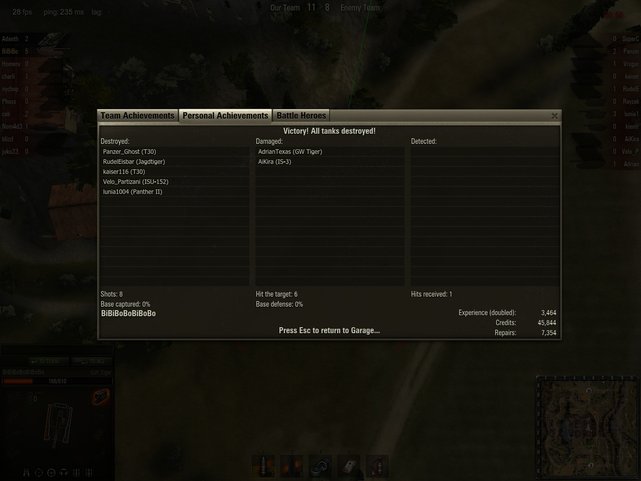 剛好是老外晚上的時間,SERVER人數很多,沒想到排到這種場 ![]() ![]() 我方機動力輸、T10少一台、有台沒用的KT(抱歉,對方派的是IS3)... BUT看到我方有2台IS7心裡就坦然一點 一開場大部分的人就CAMP,MAUS還喊出要掩護SPG(揪甘心) 只派一台車去探路~~~ 非常好的戰術,探路車一探到152,152就瞬間蒸發了 然後探路車就退,因為知道敵人都從另一邊來了,這時MT很猛的單刀直入中路迂迴 在敵人主力還沒殺到家之前又賞了IS3一發 敵人主力進來後解決兩台T30 & P2 最後靠一台滿血的IS7推進,解決掉最後一台JT ![]() 還記得剛從GWP轉GWT的時候罵得要死,裝填慢、瞄準慢、射角小 改變打法後整個豁然開朗起來 本來還有保留GWP的車組以避免GWT玩不順還有個退路,現在反而GWT的車組第2個專長都快滿了 ![]() 以後不知道會不會有240MM的炮 212/M40也滿想試試的,看看瞄準圈是不是也一樣的小