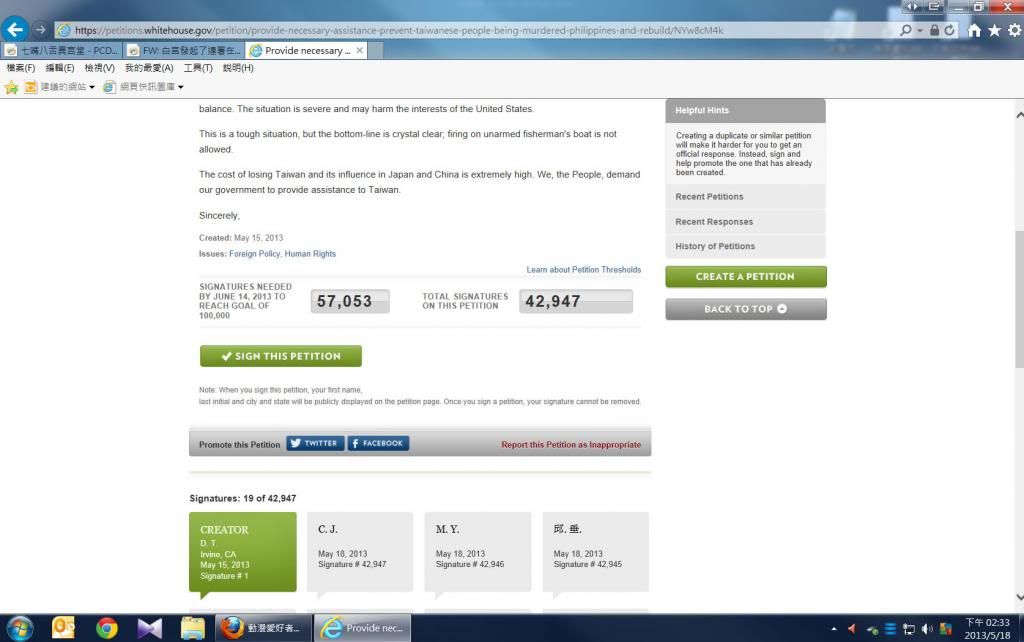 註冊完需點【SIGN THIS PETITION.】才有效喔!! |