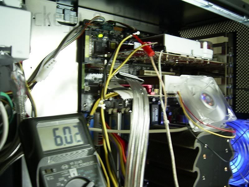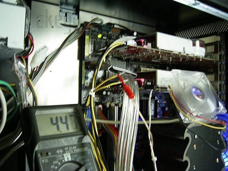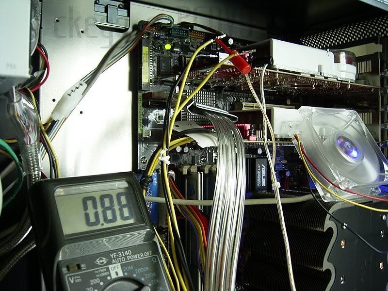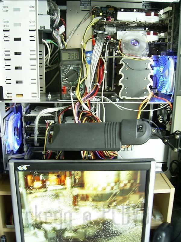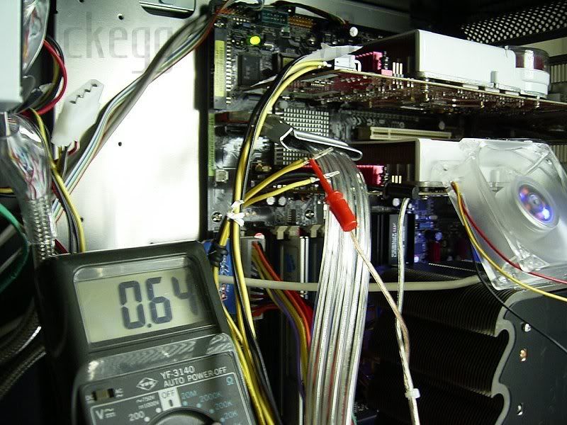 本來舊電腦是用 Antec Phantom 500 的電源, 但是這次換了 X1900 CF 組態後不夠力 (85% 效率, 所以實際約 425~450W), 只好拿出珍藏的 NMB 550W SD026A550NSW 來. 這是一顆絕版的好電源, 原設計定位是給伺服器使用的, 有著 95% 的極高轉換效率, 所以運作非常安靜, 溫度也很低, 是四年多前買的約台幣 5500 左右. 它有三組 +12V, 小改後三組分別分配給 1x顯示卡, 1x主機版, 與1x硬碟周邊.