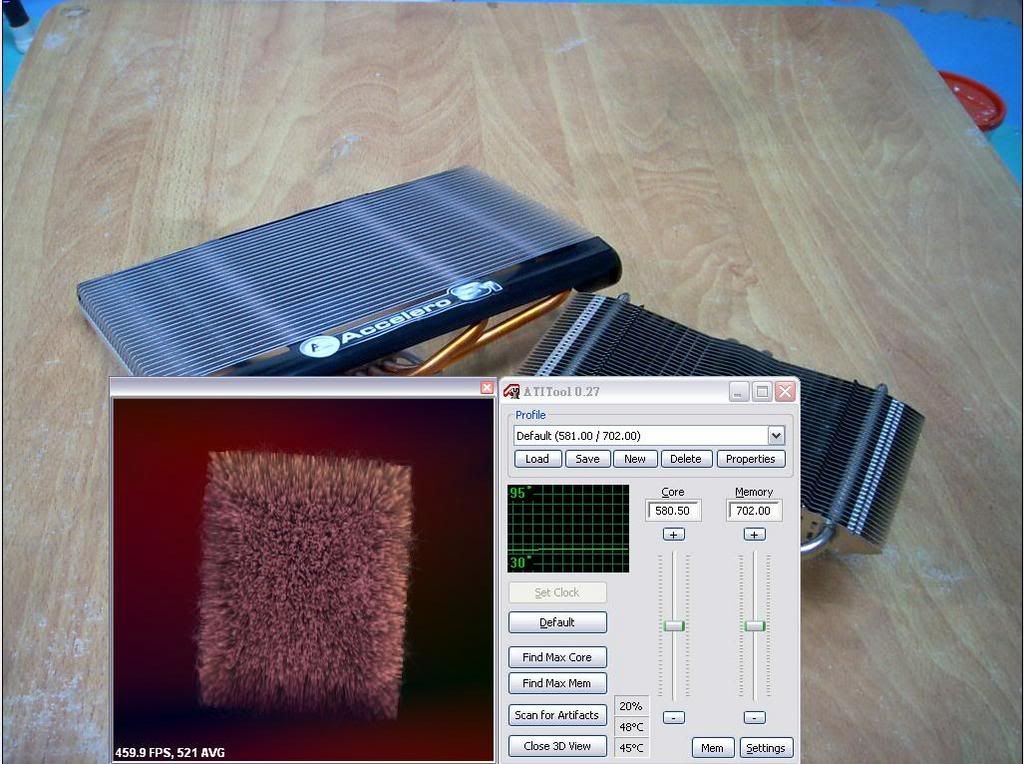 所以小弟我憑著改裝前的記憶大約敘述溫度上的差異! 先看S1表現 待機溫度 ![]() 燒機溫度 ![]() 總評: 我簡單的說明好了,S1贏過HR-03 1.價位 2.散熱效能 3.不佔空間 價位來說,一千七對上九百八這樣的差距很明顯了吧,再來散熱能力,S1大約比HR-03在待機狀態下低了三四度 在燒機狀態下都是用ATI TOOL下去測試,HR-03最高溫可達58度,而目前我測出S1最高溫始終低於50度 但是有個好玩現象,用S1待機狀態下記憶體比核心溫度高一度,HR-03則相反 另外在安裝上,HR-03的扣具零件很多,但是很好裝,完全不需工具輔助,而S1很簡單就四顆螺絲鎖上就好 但是螺絲很小是個缺點,如果改用HR-03手轉螺絲會更棒,而S1沒有HR-03的背板防彎器,但是影響不大 因為不裝風扇之下S1的確比較輕,S1讓我最難搞定的就是他那兩個黑色的扣具,他扣在顯示卡跟散熱器中間 用意是固定,但是真的很不好裝,我文筆不好所以不多敘述,有買來裝的人大概就知道我的意思 其實不裝也沒太大影響,所以看人嚕,以上就是小弟草率的S1與HR-03的對決啦!感謝收看∼∼ |
