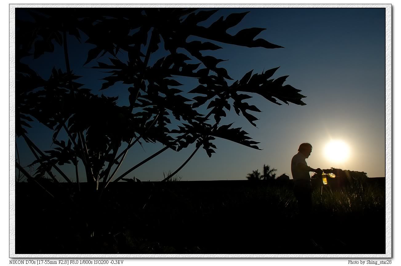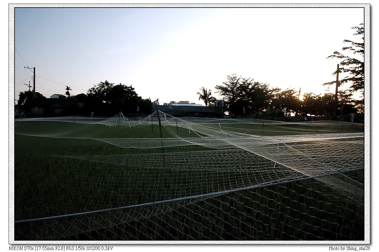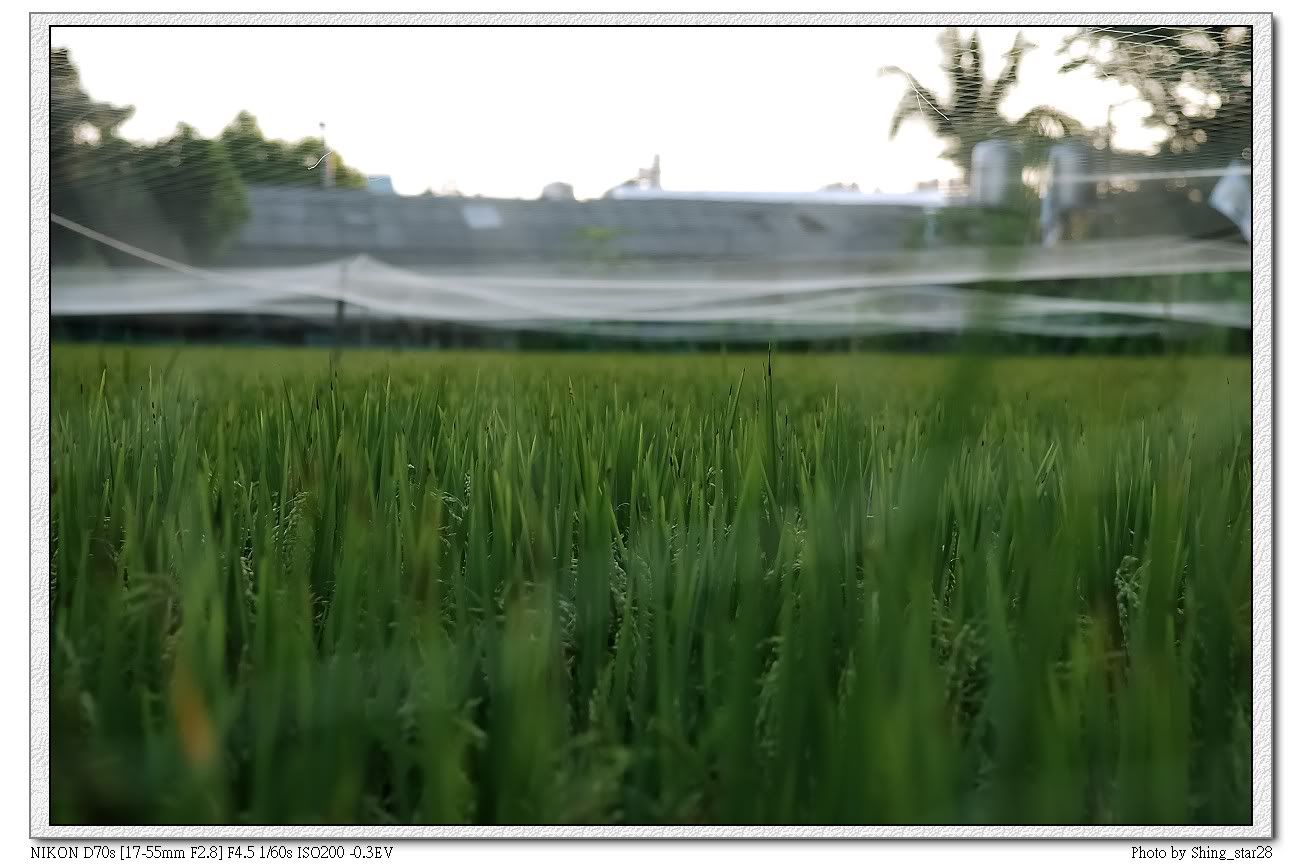 因為常出差大陸使得少有機會使用... 這天下班後,家門口繞一圈,上頂樓~ 全程使用D70s+17-55.... #1 從門口走出去不到10秒,就看到隔壁的阿伯正在整理他的花草 ![]() #2 隔壁阿伯退休後的農園喜悅~ ![]() #3 稚氣未脫的蔬菜小苗 ![]() #4 家門口,我老媽的嗜好~ ![]() #5 花個2分鐘,稻田正在呼喚著我~ ![]() #6 纍纍稻米 ![]() #7 小鳥小鳥不要來~ ![]() #8 天羅地網 ![]() #9 鄉下地方的寧靜(沒有人) ![]() #10 再走個1分鐘,公園的涼亭 ![]() #11 公園的步道 ![]() #12 回家囉~上頂樓拍個黃昏吧~ ![]() 原本期待是個好天氣, 想不到太陽在快下山的時候被突如其來的雲給沒收了... 感謝各位大大賞圖~ ![]() |