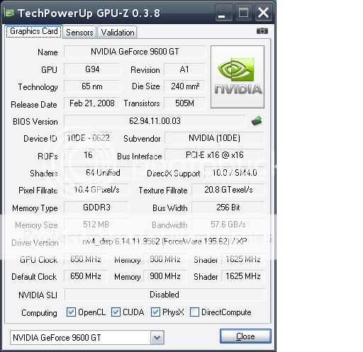 [台北]微星 9600GT GDDR3 512MB /預設就比一般9600GT更強:650MHz/1800MHz 支援CUDA /PhysX 解析度2560x1600..保固內