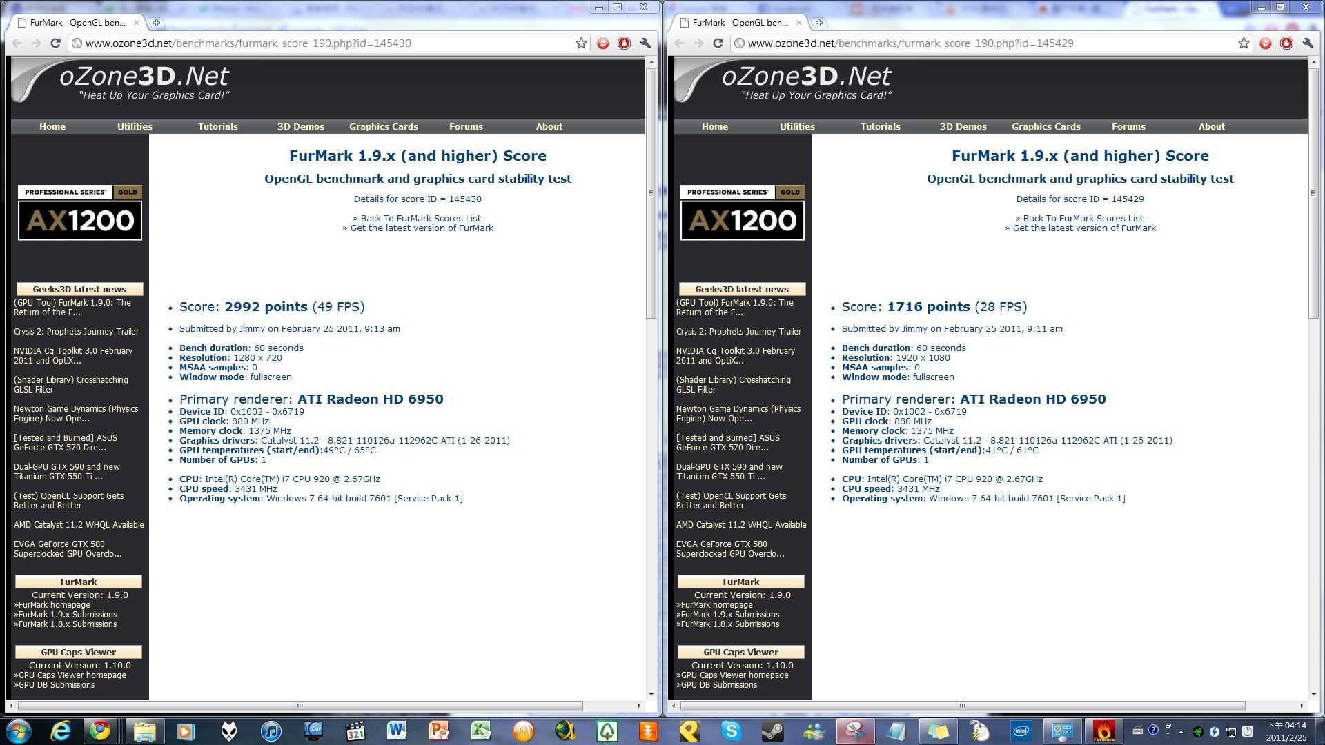 oZone3D.net網站出品的基準性能兼顯卡穩定性測試工具FurMark是玩家們用來考驗系統特別是顯卡超頻穩定性的必備利器,只不過這個家後的更新速度奇慢,上次用了半年,這次竟然花了整整一年。 今天,全新打造的FurMark 1.9.0正式版隆重登場,變化之多令人眼花繚亂。當然了,它仍然基於OpenGL 2.0,這就意味著它全面支持NVIDIA GeForce 6-500、AMD Radeon HD 2000-6000、Intel HD Graphics 2000/3000、S3 Graphics Chrome 400/500等各廠商的全系列顯卡,甚至能夠在Linux Wine下運行,未來還會增加Linux原生版本。 FurMark 1.9.0的圖形渲染負載要比FurMark 1.8.2重得多,更能壓榨新卡的潛力,比如說1920×1080分辨率下GeForce GTX 480之前能夠得到6478分、108FPS,現在只能跑出1769分、29FPS。 FurMark 1.9.0還增加了兩種新的渲染模式,一是動態背景(Dynamic Background),取代之前的靜態圖像,二是動態鏡頭(Dyanmic Camera),都能大大增加渲染工作量,不過均是可選項,玩家可根據自己的需要選擇。需要注意的是,二者不能同時開啟。 為了使測試過程更加簡單,FurMark 1.9.0現在提供兩種預設方案「Preset:1080」、「Preset:720」,分辨率分別是1920×1080、1280×720,均關閉抗鋸齒(AA)、後期效果(Post AF),開啟動態背景、燒機測試(Burn-In)。據此得出的測試成績可以在線提交並進行對比。 FurMark 1.9.0直接集成了GPU-Z、GPU-Shark兩種顯卡信息識別與狀態監視工具,並且增加了針對GeForce GTX 500系列顯卡的過電保護(OCP)遮蔽選項。 注意,NVIDIA的功耗限制和OCP功能是以應用程序配置檔案為基礎的,FurMark 1.8.2就位列其中,影響非常明顯,比如GeForce GTX 580 1920×1080分辨率下開啟OCP測試結果為4256分、71FPS,關閉之後可達7772分、130FPS。FurMark 1.9.0因為剛剛發佈,還沒有被NVIDIA列入名單,所以現在開關OCP沒什麼區別。 FurMark 1.9.0還增加了聲音警報功能,一旦GPU核心溫度超過預設值就會自動啟動,防止過熱。 GPU溫度監視也有重要變化。當多個監控工具同時訪問同一顯卡的時候,FurMark 1.8.2會顯示溫度有急劇上升,FurMark 1.9.0則加入了一個過濾模塊,消除這種影響。 對NVIDIA SLI、AMD CrossFireX多卡的支持依然沒有放鬆。 FurMark 1.9.0更新日誌: 1、支持最新的GeForce GTX 500、Radeon HD 6000系列顯卡。 2、為GPU-Z增加「/gtx500ocp」選項,可屏蔽GeForce GTX 500系列顯卡的OCP過電保護功能。 3、整合GPU-Z 0.5.1、GPU Shark 0.4.1。 4、增加可編程GPU溫度警報,過熱時發出聲音報警。 5、增加基準測試前的預熱步驟。 6、改進屏幕顯示數據(OSD)的可讀性(快捷鍵V)。 7、增加3D窗口的GPU監視。 8、增加完整的GPU-Z GPU功耗數據,功耗、電壓、電流等等。 9、每次拷機測試前都會彈出警告對話框。 10、分數提交限制為兩種預設:Preset:1080、Preset:720。 11、增加圖形渲染負載。 12、增加動態背景選項。 13、增加動態鏡頭選項和多個毛絨圓環。 14、提供兩種拷機模式:普通和極限(Xtreme)。 15、過濾溫度曲線圖竄升。 16、大量小bug修正。