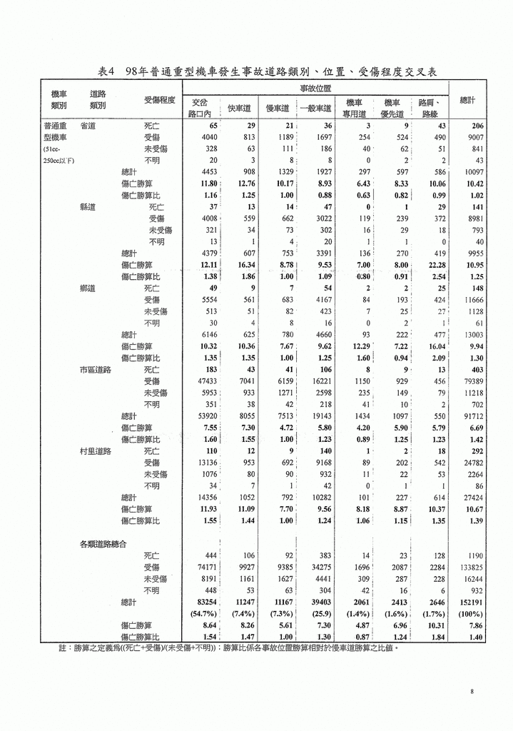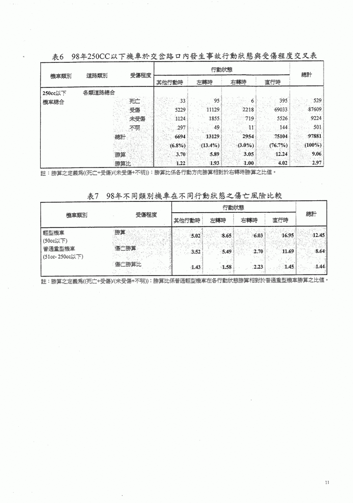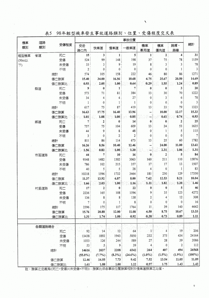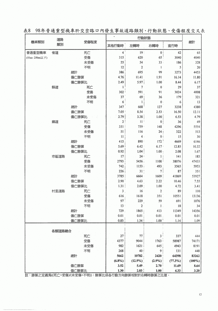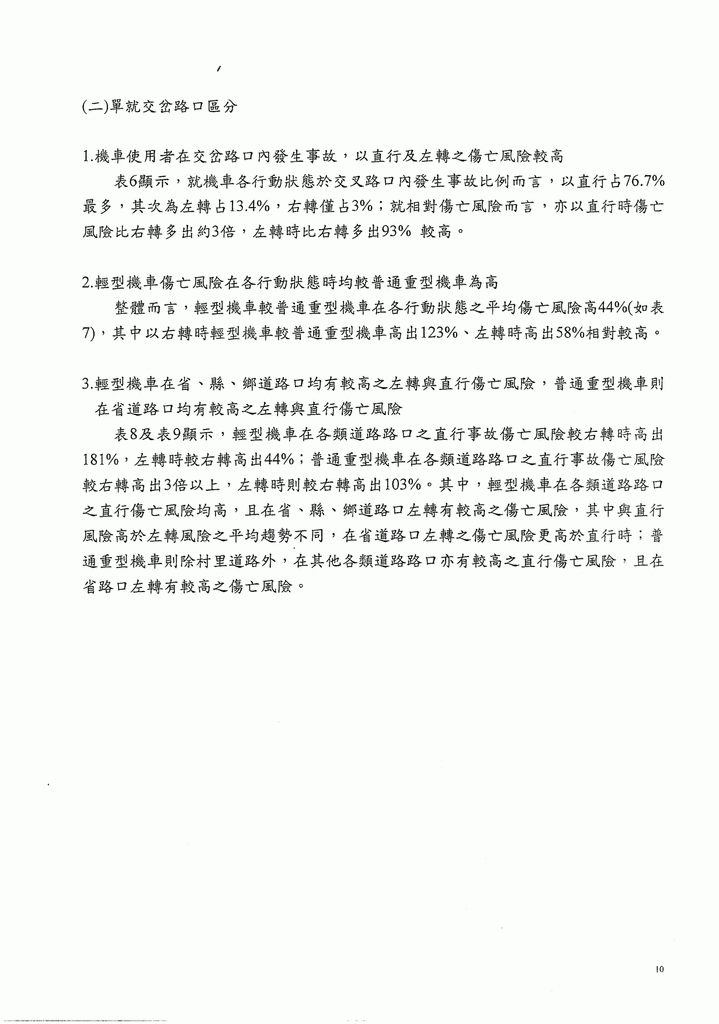 最後一張圖.....建議..... ….現階段若全面取消單向三車道以下道路禁行機車道,而允許機車行駛內側快車道,須審慎考量機車事故嚴重度增加之可能性 …..現階段亦不宜全面允許單向三車道以下道路直接左轉 |