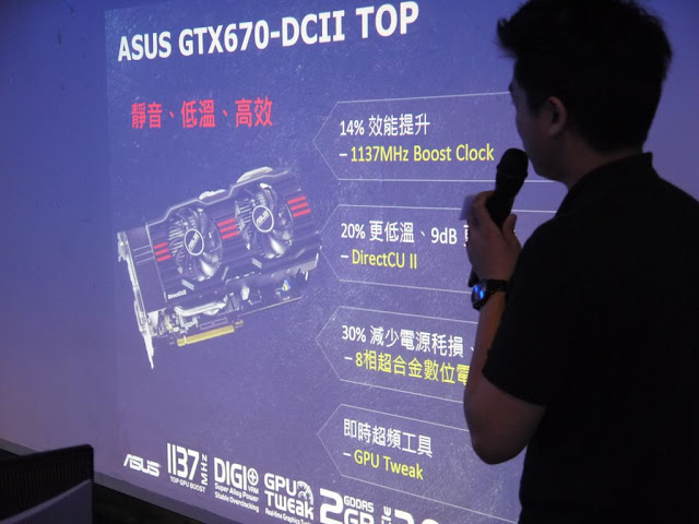 XF 網聚除了與許多品牌合作,讓廠商展示產品之外,還有抽獎和課程,這次網聚還有個主題就是讓大家又愛又恨的暗黑破壞神 3。 ![]() 第一家介紹的是ASUS。 ![]() ASUS P8Z77-V Premium的產品特色。 ![]() 這張主機板的特色是首批搭載 Thunderbolt 的主機板,傳輸速率更高。 ![]() Thunderbolt 可以同時提供資料和顯示的訊息傳輸。 ![]() 完整的PCIx4頻寬,保留最大傳輸效能,是現在正要普及的 USB 3.0 2倍快,原本只在 Mac 系列出現,現在 PC 使用者也有機會用到了。 ![]() Display Chain,可以串接 6 個裝置加上 1 個螢幕。 ![]() 支援 4 Way SLI/CF,擁有強大的處理效能。 ![]() 搭載 PCIe 3.0 Expansion Bridge,總共有 32 條 PCIe 3.0 訊號線路。 ![]() 4個 PCIe 3.0 X16 的擴充插槽設計,可以滿足玩家擴充需求。 ![]() 4 Way 的效能無庸置疑。 ![]() ASUS 獨家的 SSD Caching II,多個 SSD 快取提供大容量和驚人效能。 ![]() 雖然在 Intel 有提供軟體的 ISRT ,而 ASUS 的方案是屬於硬體方面。如果受限於每月預算,可以分批購買 SSD 再掛上去,掛越多,速度也會越快。 ![]() 無論從金額或是容量都贏過其他方案。 ![]() SSD Caching II 操作也很簡單友善。 ![]() SSD Caching II 更靈活、更省錢、簡單好用及快速設置。 ![]() ![]() 接下來要講的與暗黑破壞神 3 有關係。 ![]() ASUS 很榮幸成為暗黑破壞神 3 官方合作夥伴。 ![]() 推出了主機、螢幕和筆電。 ![]() ASUS主機板型號的產品定位。最高階是 ROG ,還有中階和入門系列。 ![]() ASUS 的 Z77 大軍 都準備好了,創新飆速效能、調整自訂風扇轉速及透過無線網路遙控。 ![]() Maximus V GENE Z77 系列主機板,全面釋放遊戲效能。 ![]() 高效能數位電源模組 ─ Extreme Engine Digi+ II,全數位化電源控制模組。 ![]() 在音質的方面也很有要求,SupermeFX III ,將數位與類比訊號做區隔。 ![]() mPCIe Combo,結合 mini-PCIe 與 mSATA 。 ![]() mPCIe 可以擴充無線網路、藍芽等裝置;mSATA 可以支援 SSD 擴充。 ![]() Asus Maximus V Formula 搶先看。 ![]() 完美散熱設計,複合式空冷/水冷散熱模組設計,體驗絕佳散熱成效。 ![]() ThunderFX,可以想像成DAC。 ![]() 支援多種品牌,包含家用遊戲機,內建耳機擴大器,支援高阻抗耳機,提供清晰音效。 ![]() 降低遊戲的環境噪音。 ![]() 有多種遊戲音效EQ可以依照喜好需求調整。 ![]() Mem TweakIT是記憶體調教排名平台,只要將檔案上傳就可以排名。 ![]() ASUS P8Z77-V 系列,第三代數位店員雙智能處理器;Wi-Fi GO! 最優異的無線、雲端傳輸體驗;智能風扇自動調教。 ![]() 全數位電源控制,如超薄筆電一般省電。 ![]() 智能數位設計-TPU,極致效能表現。 ![]() 除了高效能,電腦閒置或是不需要高效能的時候也能節能省電愛地球。 ![]() 以往只有筆電支援無線網路,現在有幾家主機板廠商將 Wi-Fi 也導入了主機板上,畢竟可以用無線網路是更方便的,也不會看到醜醜的線材。 ![]() 支援DLNA,可以將 PC 影音檔案直接傳輸到客廳電視,透過行動裝置控制PC。 ![]() FAN Xpert 2─風扇自動調校。 ![]() 可以依照需求按下按鈕調整風扇轉速。 ![]() 講完主機板,再來是顯示卡,這張 GTX 670 到底有什麼特別的地方呢? ![]() 靜音、低溫、高效能。效能提升,溫度卻下降。 ![]() 溫度更低也更安靜。 ![]() 原本設計與 Direct CU 的設計不一樣。 ![]() 8相超合金數位電源,低溫、壽命長、高效能。 ![]() GPU Tweak 即時超頻。 直覺調整,同步超頻電壓調整。 ![]() 最後是螢幕,這台 VG23AH,是一台3D顯示器,IPS面板,LED背光,動態對比高達80000000:1。 ![]() 有立體聲喇叭、6向人體工學機身調整,附有3D眼鏡及為眼鏡族設計的夾片式眼鏡。 ![]() ASUS 在 Computex 的 攤位號碼是 M0810 。 受限於篇幅限制,更多內容放在部落格: http://yuyu780906.blogspot.tw/2012/06/2012-xf.html
